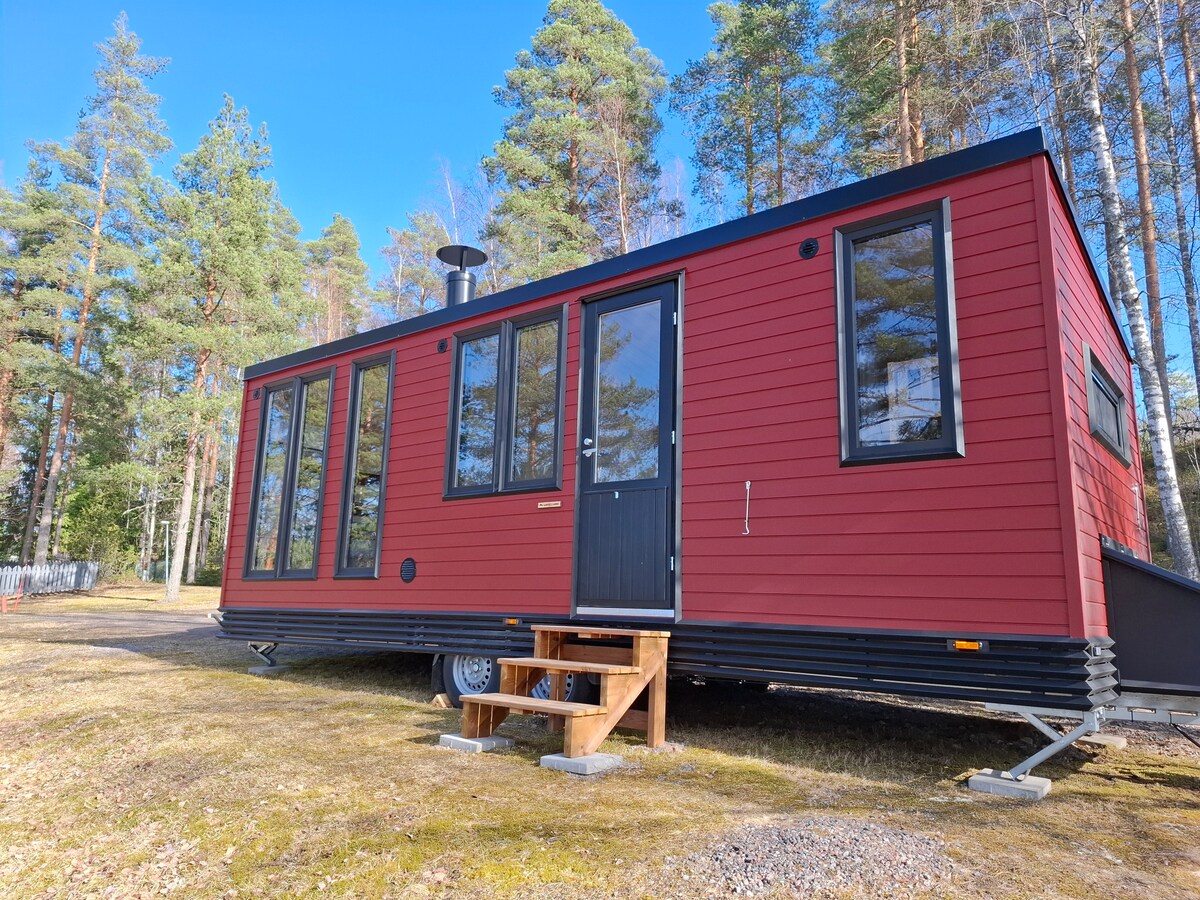 Una casa de Minnie en una casa de carruajes a orillas del Gran Saimaa. Una nueva casita inteligente y linda totalmente equipada en una gran terraza. Gran vista del lago Saimaa y natación en la playa. También hay servicios de sauna tradicionales y atmosféricos. La cabaña tiene aire acondicionado y chimenea, así como su propio inodoro de cassette.