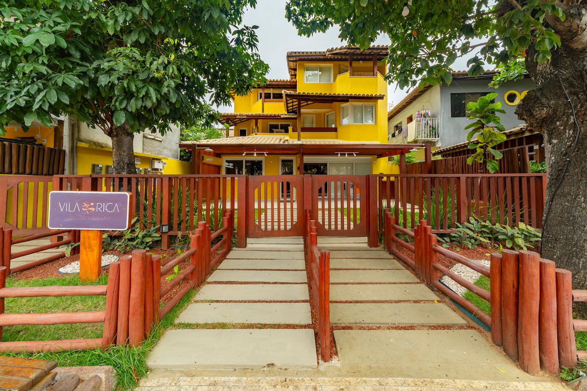 Nuevo, cómodo y completo dúplex 🏡 apto en el centro de la encantadora Vila de Praia do Forte, a 100 m de Praia do Portinho y al lado del Proyecto Tamar, piscinas naturales, bares y restaurantes. Tiene una suite con cama tamaño queen, lavabo, una cocina equipada, aire acondicionado en todas las habitaciones y un sofá cama. ⚠️ Importante: 🚫🚗 Nuestra calle es peatonal (no accesible en auto). 🅿️ Espacios giratorios zona azul y estacionamiento privado a 2–3 min a pie.