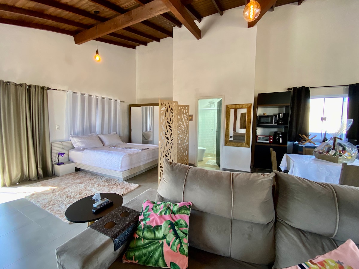 Un pequeño refugio en la barra de Ibiraquera, estudio ubicado en la parte trasera de una casa, con pasillo de entrada privado y zona privada totalmente vallada. Situado junto al mar, es una gran opción para las parejas que quieren tomarse unos días para descansar. El estudio tiene todo lo que una pareja necesita para estar bien acomodada, cocina equipada, aire acondicionado, cama queen size, bañera. La decoración está inspirada en la encantadora Tailandia.