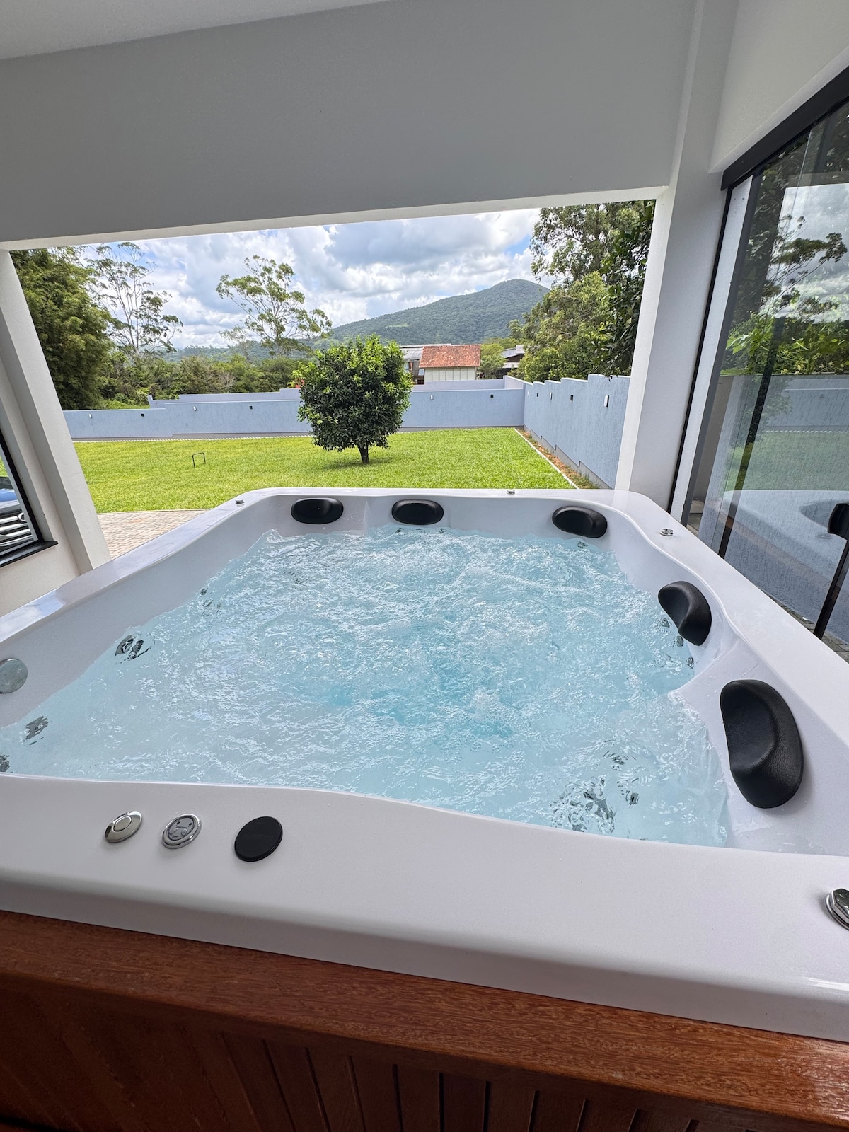 Casa FAMILIAR cómoda y ACOGEDORA (para niños) - Ubicado en Praia da Barra de Ibiraquera - IMBITUBA/SC, cerca del mar y la laguna (a pie). - Cocina y sala de estar, wifi, 3 dormitorios - Aire acondicionado., camas tamaño queen y televisor inteligente, ropa de cama y baño incluida y espacio de oficina en casa Patio trasero Jacuzzi climatizado en un entorno abierto Área de juegos exclusiva y apta para mascotas Mesa de billar y ping pong, parrilla para barbacoa. - Lavandería completa, bicicletas, sillas de playa y sombrilla🏖️ @bluehouseibira