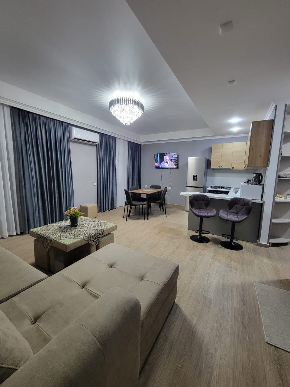 Bienvenido a nuestro acogedor apartamento en Kutaisi, ubicado en el octavo piso de un edificio con ascensor en funcionamiento. El departamento está diseñado para 2 huéspedes; disfruta de las vistas de la ciudad desde tu balcón. El apartamento incluye un cómodo dormitorio, una sala de estar con sofá y TV, una cocina totalmente equipada con todos los electrodomésticos y un baño limpio. Es ideal para viajeros solitarios, parejas o huéspedes de negocios que buscan un espacio tranquilo y privado para relajarse después de un día de turismo o trabajo.