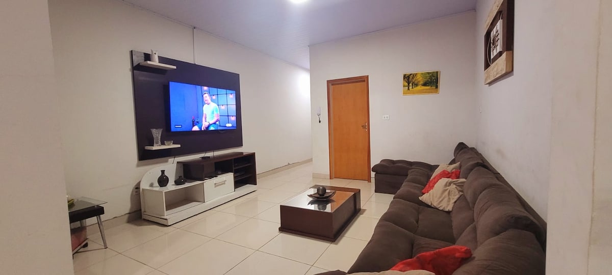 Acogedora casa, con escritorio, dormitorio, cocina, sala de estar y área de servicio. Wi-fi. Situado en el barrio de Juçara. Todo cerca: supermercado, restaurante, centro comercial, panadería, farmacia, ópticas, clínicas médicas, lavandería y otros. Suite con cómoda cama doble, aire acondicionado, ducha eléctrica. Hasta 2 colchones adicionales disponibles, con almohadas, sábanas y toallas, que se pueden agregar a petición del huésped, sujeto a cargos.
