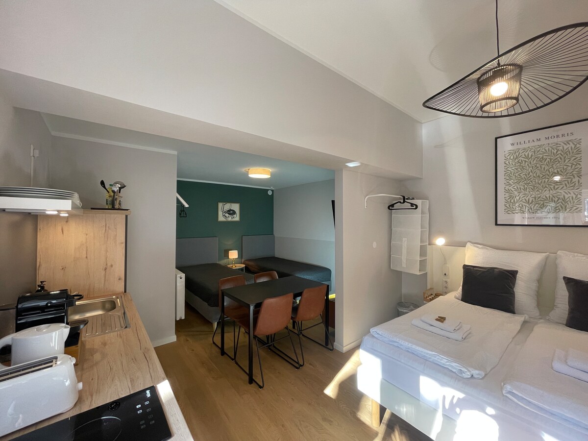 ¡Tu hogar en medio del casco antiguo! Acabamos de renovar completamente el acogedor apartamento tipo estudio de 30 metros cuadrados de alta calidad. Además de una zona de dormitorio con una cama de muelles de alta calidad, encontrarás un baño grande y una sala de estar con una cocina abierta. El apartamento está equipado con todo lo necesario para tu estancia con nosotros en Núremberg. Debido a su ubicación en una calle lateral, el apartamento también es muy tranquilo.