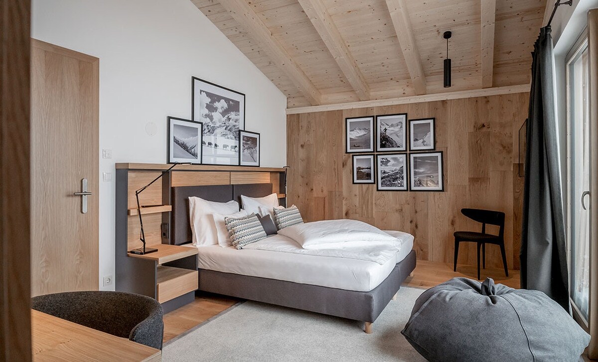 Puitalm – en lo alto. Y bastante lejos de lo común. Apartamentos con estilo, vistas para enmarcar y esta sensación tranquila de: "Me quedo aquí". Mucha luz, buen diseño, pensado hasta el último detalle, y sí, cada unidad tiene su propio balcón o terraza con un panorama real. Sin zoom, sin filtro. Además: nuestro spa. Piscina infinita con vista al valle, sauna panorámica, baño de vapor, áreas de relajación con vista. Para aquellos que quieren sentirse como si hubieran vuelto a la normalidad después de estar afuera. Ya sea que estés caminando, leyendo, trabajando o no haciendo nada en absoluto, todo se siente mejor aquí. Tu mejor opción: 76–93 m² de espacio habitable | 2 dormitorios | Balcón con vista panorámica Ocupación: 4-6 personas Servicios: dos dormitorios con cama doble y cada uno con su propio baño, cocina amplia con sala de estar (ampliable), comedor con espacio para todos, balcón con vistas, 2 plazas de aparcamiento incluidas