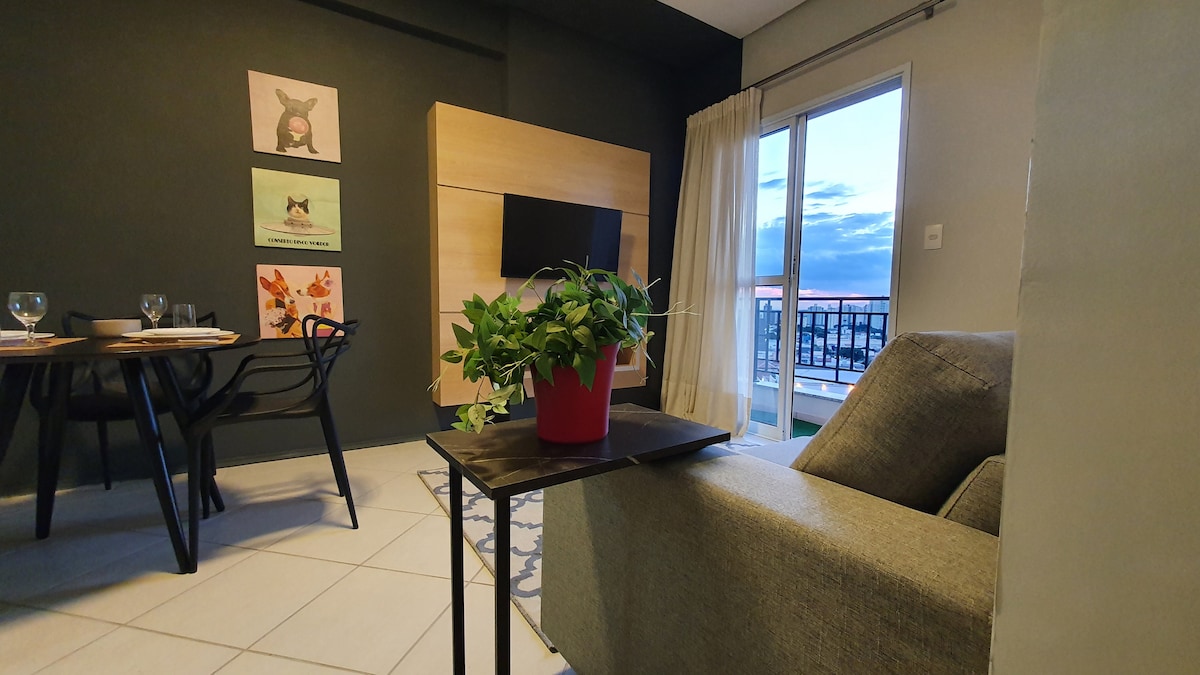 Apartamento muy bien ubicado en la zona céntrica de Indaiatuba, junto al centro comercial Jaraguá, tiendas, mercados, bares y restaurantes, con fácil y rápido acceso a la red de carreteras de la región y al aeropuerto de Viracopos. Amplio apartamento de 52 m², recientemente reformado, decorado y equipado, con dormitorio privado, ideal para estancias cortas o cortas, ya sea por placer o por trabajo.