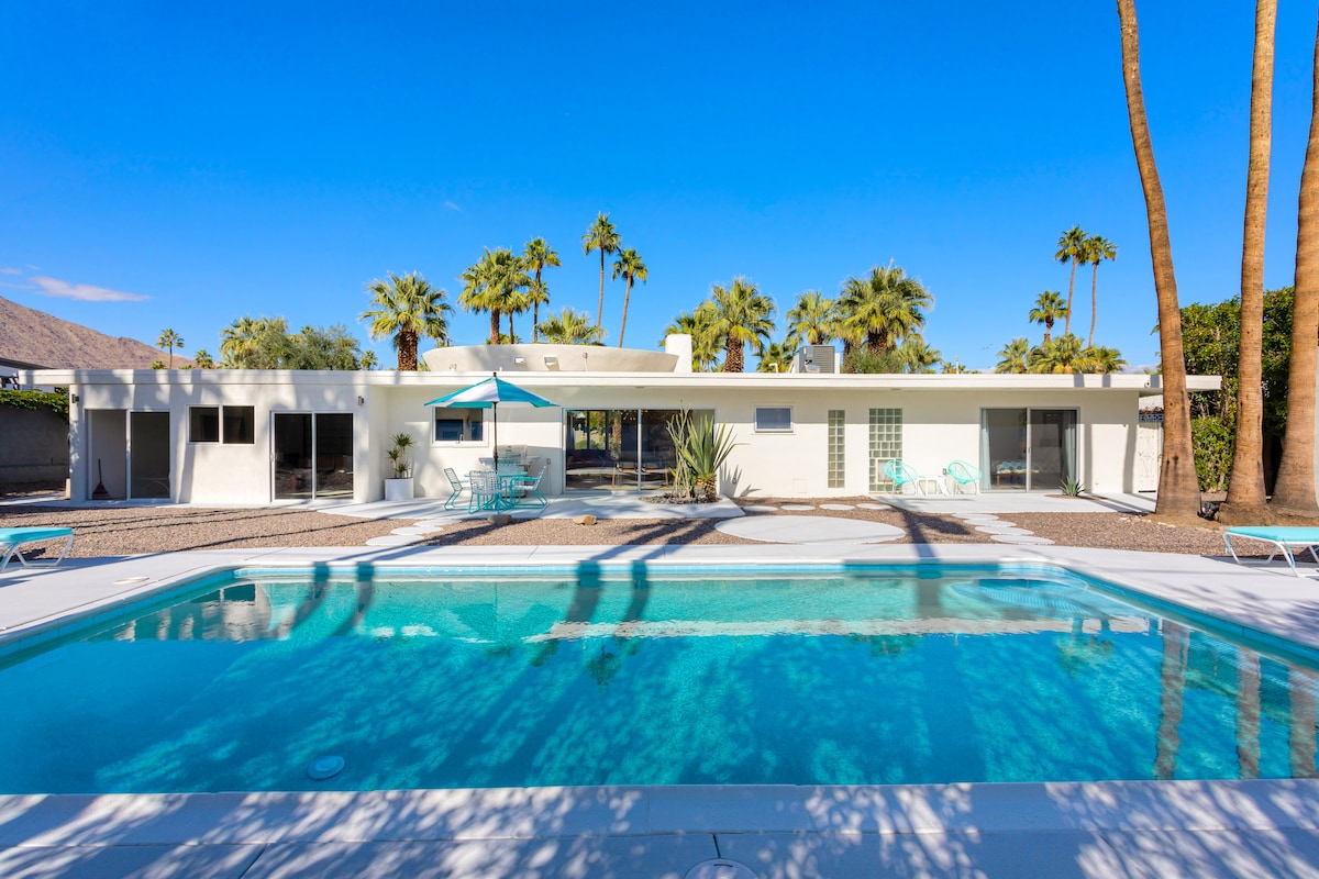 Twin Palms de mediados de siglo con piscina privada, spa y vistas