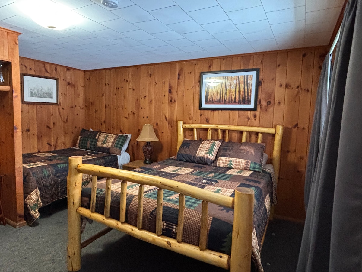 Escápate a un cálido refugio forrado de madera construido para dos. Esta suite King de un dormitorio combina el estilo rústico de Adirondack con el confort moderno: una cocina totalmente equipada para desayunos relajados por la mañana, una acogedora sala de estar para relajarse y una cama de madera artesanal que se siente como un abrazo después de un día en Lake George Village. Camina hasta el restaurante, regresa a la tranquilidad y despiértate listo para tu próxima aventura.