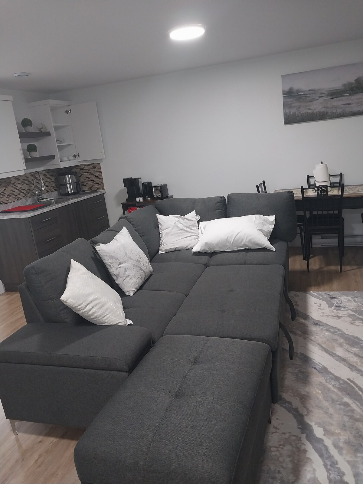 Bienvenido a nuestro nuevo hogar ubicado en la codiciada zona de Moncton. Un exclusivo apartamento privado de un dormitorio que cuenta con su propia entrada, una impresionante cocina contemporánea, una acogedora sala de estar completa con un sofá cama, un dormitorio lujosamente cómodo, baño privado y la comodidad de una lavandería en la unidad con lavadora y secadora. Convenientemente céntrico: a minutos del casino, el coliseo, el parque Magnetic Hill, el centro de la ciudad, restaurantes, centros comerciales, el aeropuerto y la salida de la autopista.