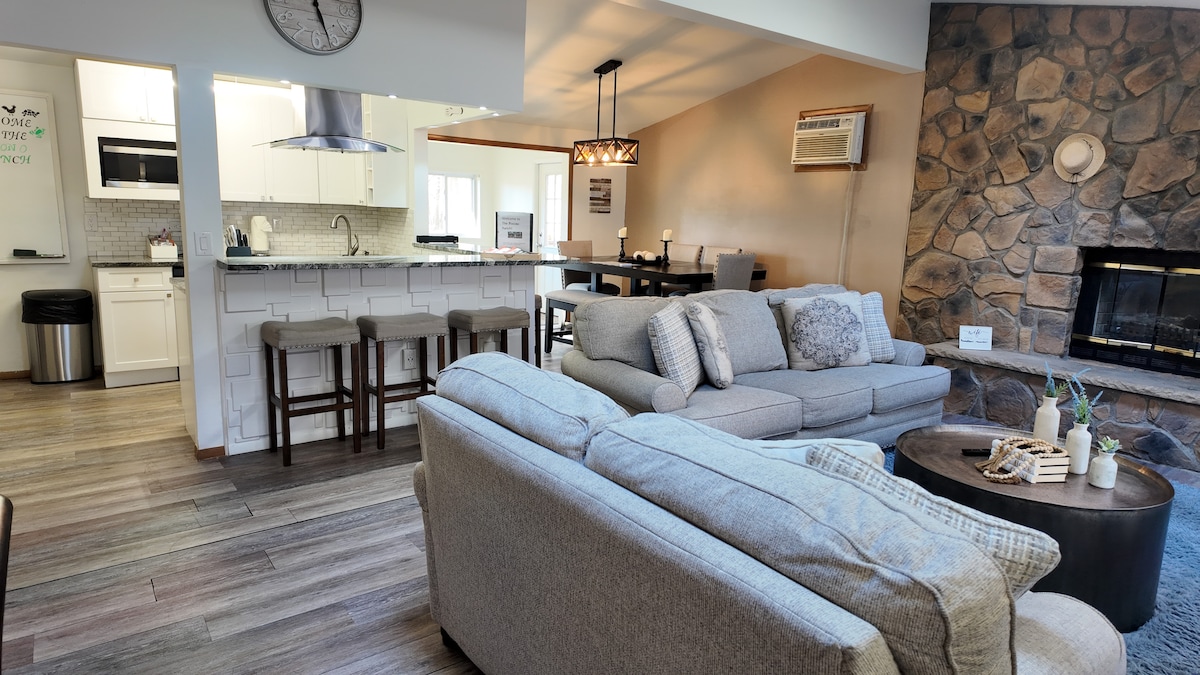 Step into our 50s diner-inspired chalet — where classic charm meets modern comfort. Highlights: *Stunning mint green fridge *Custom Diner banquette seating *A jukebox! *California king-sized bed *High-speed wifi *Dogs Welcome! *Spa-like retro-tiled bathroom *Deluxe hot-tub *Luxurious velvet sofa *Stunning spiral staircase to open loft *Adorable "Little Bear Cave" Play space *Pass-Thru Cafe Window on the deck Retro meets modern... enjoy the best of both worlds here @thehappydayschalet.