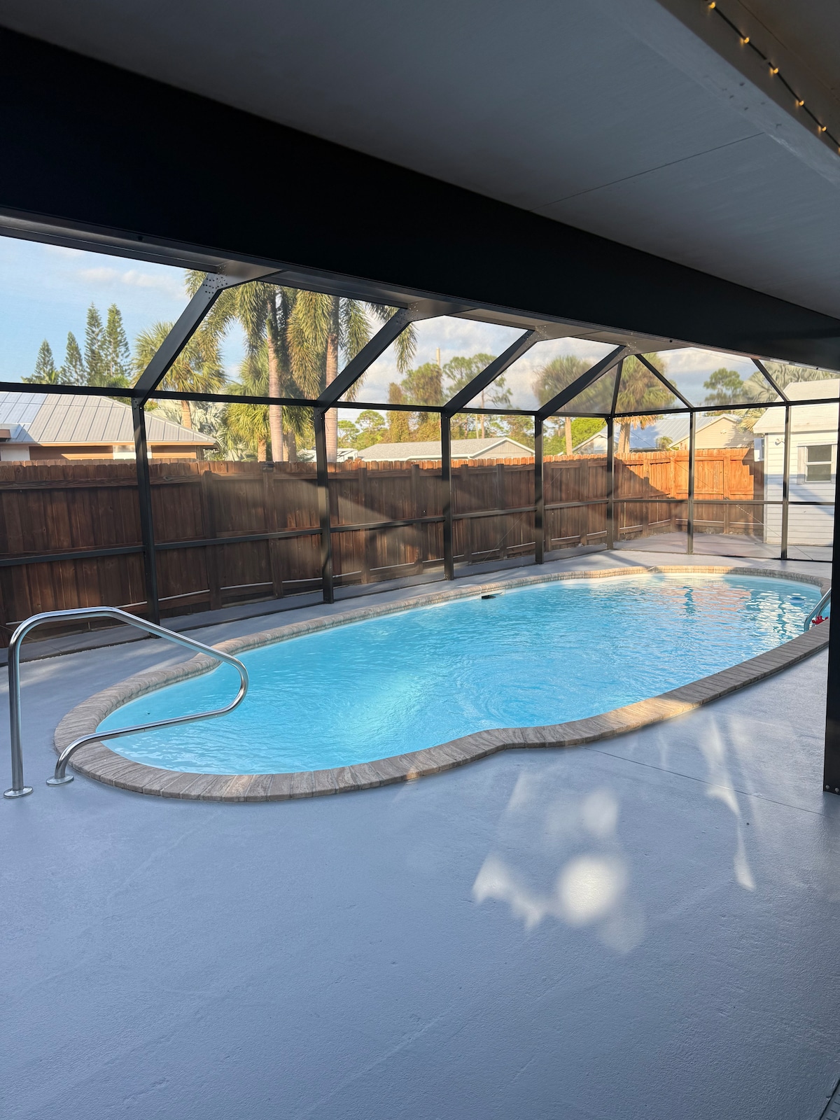 Ven a disfrutar de esta hermosa casa de playa cerca del centro de la ciudad y del río Indian, y a 10 minutos en coche del océano. La casa cuenta con una gran piscina privada climatizada y un patio trasero vallado. Amueblado con una cama tamaño king, una litera con cama nido doble y una cama tamaño queen con cama nido individual, ¡esta escapada vacacional es perfecta para toda la familia! La cocina está completamente equipada para entretener en cualquier ocasión. Completa con televisores inteligentes para conectarte a todas tus opciones de transmisión...