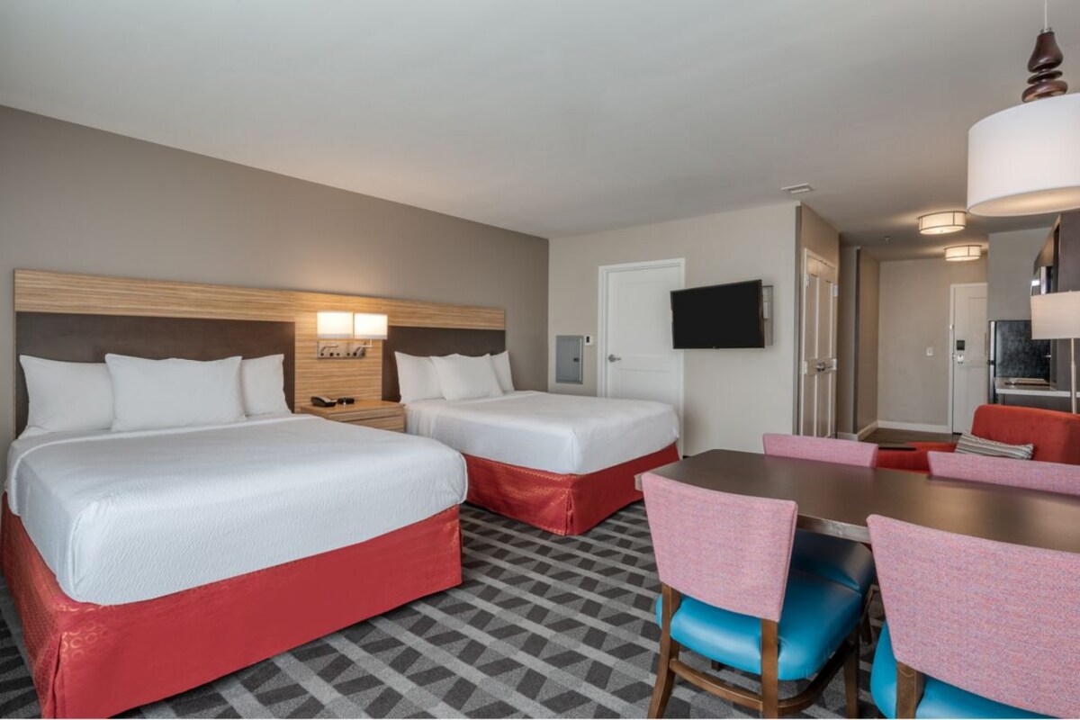 2 camas tamaño queen | Echo Suites Indy | Cocina completa | Mascotas
