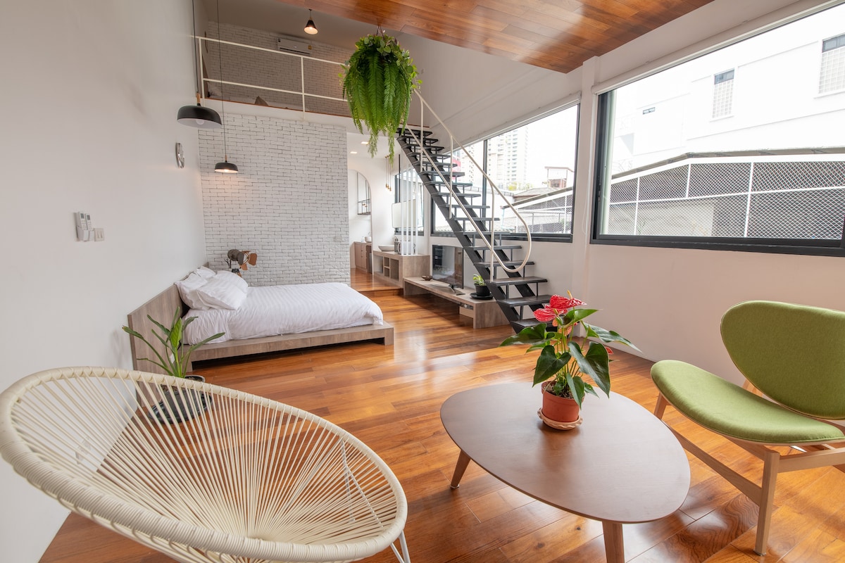 Loft dúplex icónico • Asoke • Techo alto • Familia