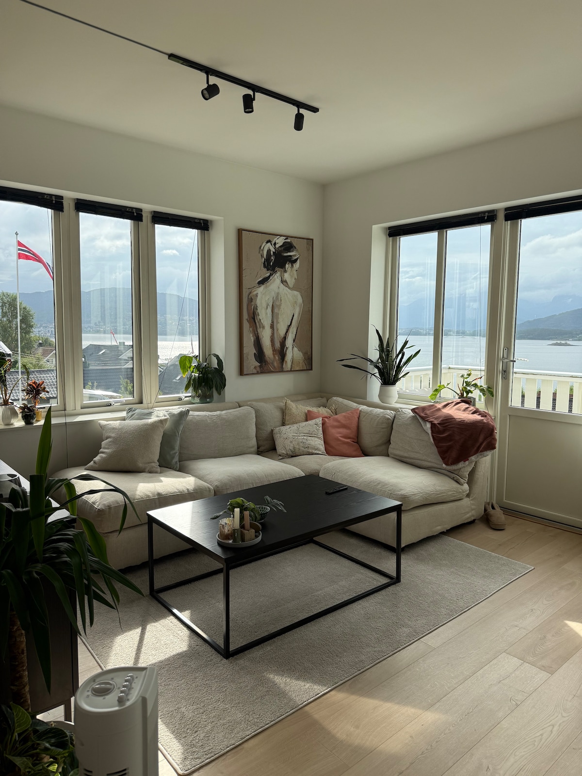¡Fantástica vista desde la sala de estar fuera del apartamento! En parte también con techo y lámpara de calor para los días más fríos o lluviosos. Perfecto para desayunar y relajarse por la noche con vistas incluso con el clima no tan bueno. Apartamento de 2 dormitorios, salón con cocina integrada y un baño. Situado cerca del centro de Ålesund, a 3 minutos en coche y a 20 minutos a pie. Zona de senderismo de Aksla justo al lado del apartamento. Estacionamiento Gratuito Camas dobles en cada dormitorio. Cocina totalmente equipada con todo lo que necesitas.