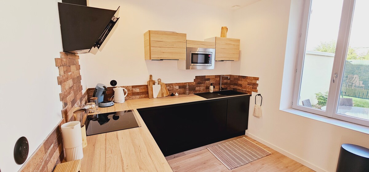 Bienvenido para una escapada en pareja o una estadía relajante ✨ El alojamiento incluye una habitación luminosa, con una cómoda cama doble, una acogedora sala de estar, televisión y zona de comedor con té Baño con ducha y WC 🕌 Espacio de bienestar (en + 50€/noche) 💨Hammam,🧴 jabón negro, guante de estuche, té y frutos secos 🌳 Exteriores cerca del bosque, ideal para paseos en bicicleta🚲 por los senderos de los alrededores (préstamo gratuito) Cerca de la tienda de comestibles, la panadería y la estación de tren 🌞 En el exterior Terraza amueblada y barbacoa