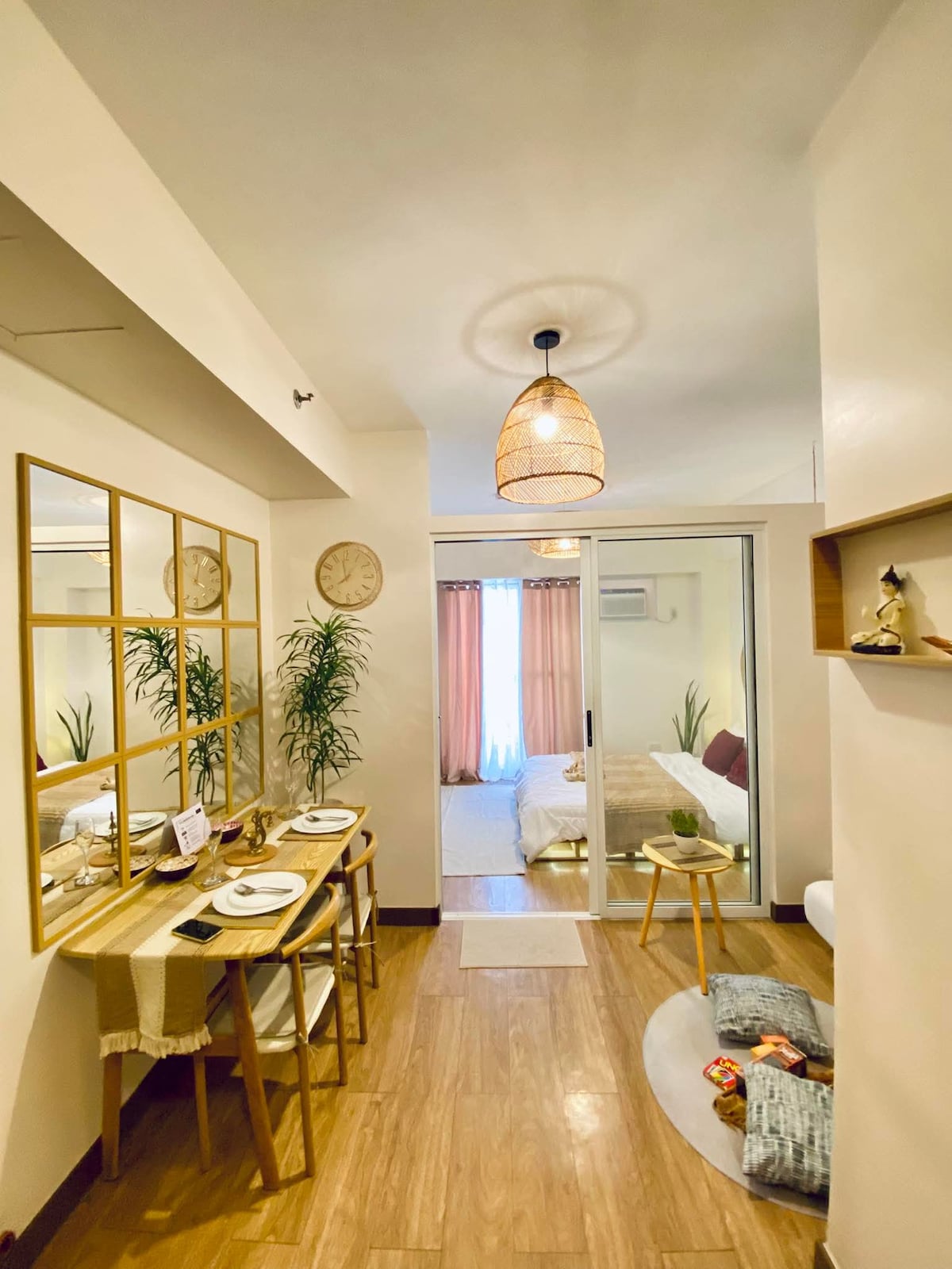 Casa Luna es un estudio totalmente amueblado de 21 metros cuadrados ideal para relajarse, tener una cita con tus seres queridos o pasar tiempo de calidad con tu mejor amigo. También podemos alojar a viajeros de negocios :) 🏊♂️ Exclusivo de las tarifas de servicios (gimnasio/piscina) *Opcional* 200 por huésped de martes a viernes 300 por huésped de sábado a domingo y festivos Aparcamiento de🚘 pago disponible en The Pop Up Katipunan, situado a pocos minutos a pie del edificio. Tienda coreana🏪 Ceci, 7-eleven y Uncle John's en las inmediaciones. No se admiten🐶 bebés peludos/mascotas en el edificio.