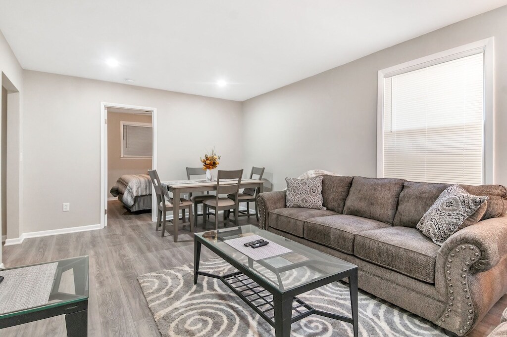 Casa extremadamente limpia, actualizada de tres dormitorios y dos baños. Se encuentra en un vecindario tranquilo, pero a solo unos minutos del bullicio del centro de la ciudad. Este alojamiento incluye un patio trasero con un amplio patio trasero y un fogón. Rincón de café, dos altavoces de música inalámbricos, 3 televisores Roku, wifi premium y muchas otras comodidades y suministros. El sótano tiene lavadora y secadora, acogedora área de TV, área de bar, nevera, baño, juegos, tarjetas y oficina/sala de juegos.