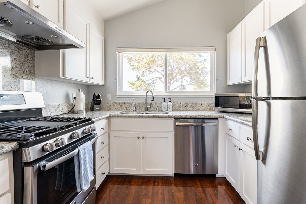 Esta casa moderna, abierta y espaciosa se encuentra a 5 minutos a pie de la playa de Río del Mar. Disfruta del diseño limpio, la gran terraza y la vida al aire libre en el interior. Numerosas actividades al aire libre a tu alcance, como golf, zonas de surf de clase mundial y rutas de ciclismo y senderismo de renombre en el bosque de Nisene Marks. Equipado con internet de alta velocidad, un proyector y sistema de sonido Sonos. Nuestro alojamiento tiene capacidad para cinco personas y es ideal para parejas, viajeros de negocios, personas que viajan solas y familias.