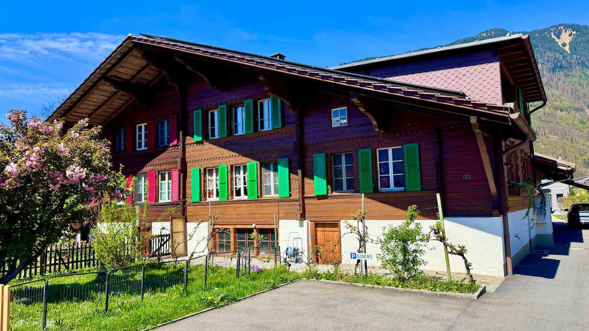 Este chalet suizo de interés histórico ofrece apartamentos con excelentes vistas desde los balcones, amplias habitaciones soleadas, cocina totalmente equipada, wifi gratuito y sala de estar. Está situado en la ubicación perfecta para explorar la zona de Interlaken. A solo 10 minutos a pie del centro de la ciudad, excelentes conexiones de autobús y acceso a las estaciones y a las zonas circundantes. Tienda de comestibles a 50 metros, abierta los 7 días de la semana y una gran panadería local al otro lado de la calle que ofrece las delicias de la región.