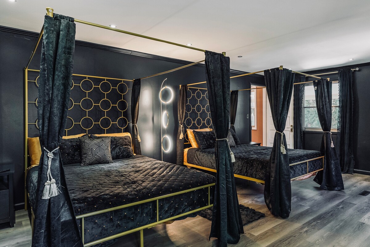 Welcome to Velvet Noir—an indulgent, moody escape in the heart of historic Sherman Hill, Des Moines’ oldest downtown neighborhood. Built in 1880 and fully renovated, this dramatic yet elegant home sleeps 10 and features 3 stunning bedrooms, 2 full baths, and a spacious outdoor patio. Walk to local shops, nightlife, renowned breweries, and acclaimed dining. With vintage glamour and rich velvet finishes, it’s perfect for unforgettable gatherings or romantic city getaways.
