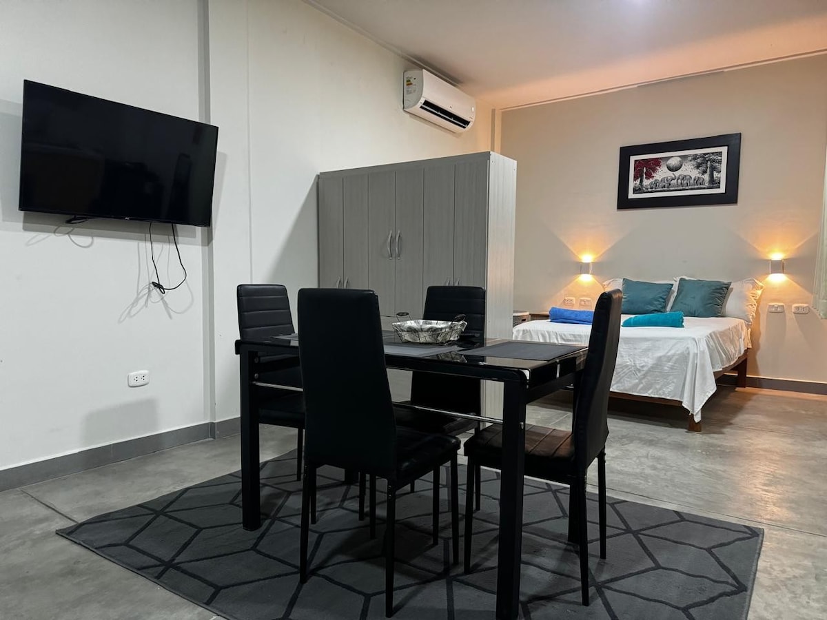 Apartamento independiente, seguro y moderno. Disfruta de una estancia confortable. Su diseño elegante incluye una acogedora sala de estar, cocina totalmente equipada, y las plantas de interior dan un ambiente fresco y relajante. Cuenta con Wi-Fi, televisión y aire acondicionado. Situado en el segundo piso con ingreso privado. La ubicación céntrica facilita el acceso a los puntos de interés de la ciudad. Es ideal para viajeros de negocios o de placer que buscan comodidad y estilo.