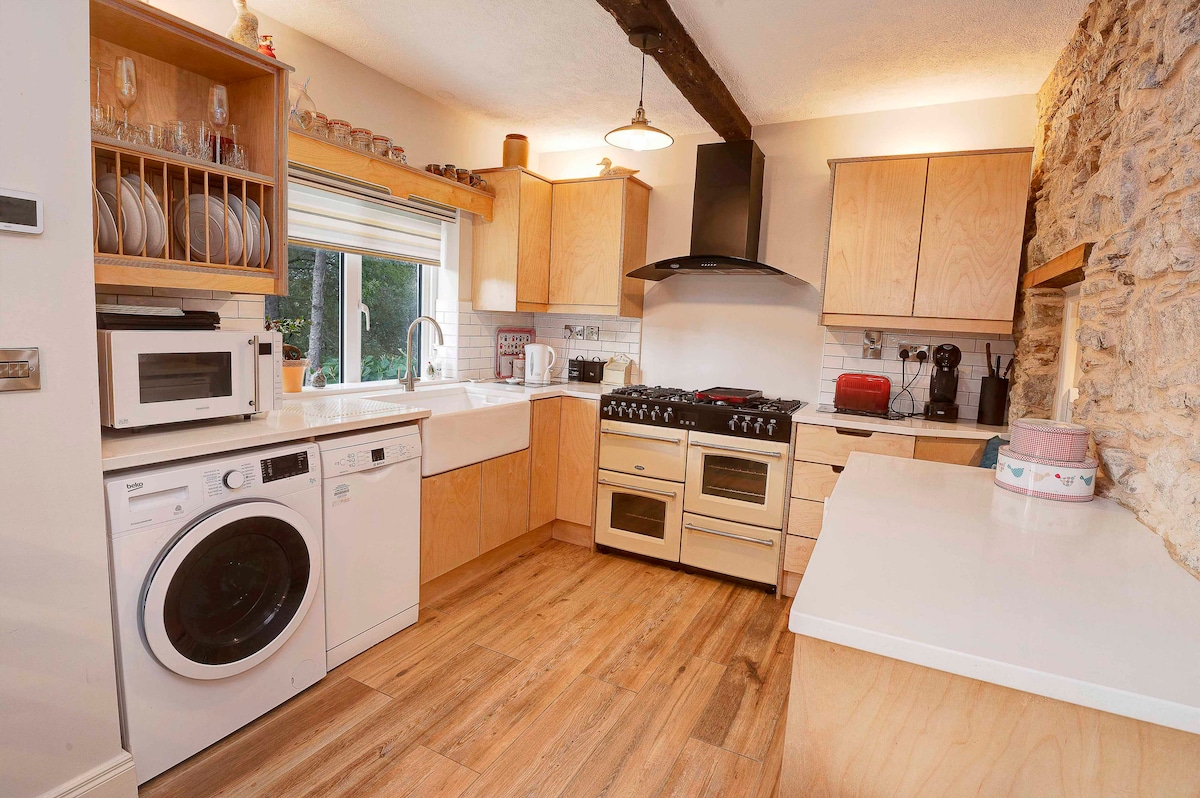 Este es el lugar perfecto para escapar de todo. Alojamiento de lujo en un entorno aislado. Apartamento independiente con 2 dormitorios, dos baños y una cocina de planta abierta, sala de estar y comedor con gran chimenea abierta. La cocina está totalmente equipada para cocinar y comer, incluyendo barra de desayuno y lavadora para la ropa. Los huéspedes tienen su propia entrada independiente y hay un amplio aparcamiento privado. Puede alojar cómodamente a 5 personas. Cuna y trona disponibles bajo petición.