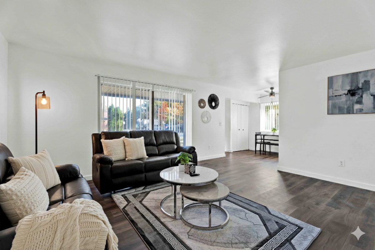 Descubre la comodidad moderna en esta casa de campo totalmente renovada. Tres dormitorios con camas tamaño queen y 1,5 baños actualizados lo hacen perfecto para las familias. Disfruta de la acogedora cocina, el wifi y el estacionamiento. Relájate en el patio trasero semicerrado o explora las tiendas cercanas, todo desde nuestro vecindario tranquilo y seguro. Todos los rincones de este alojamiento se han renovado cuidadosamente para proporcionar encanto y comodidad. ¡No se admiten mascotas, por favor!