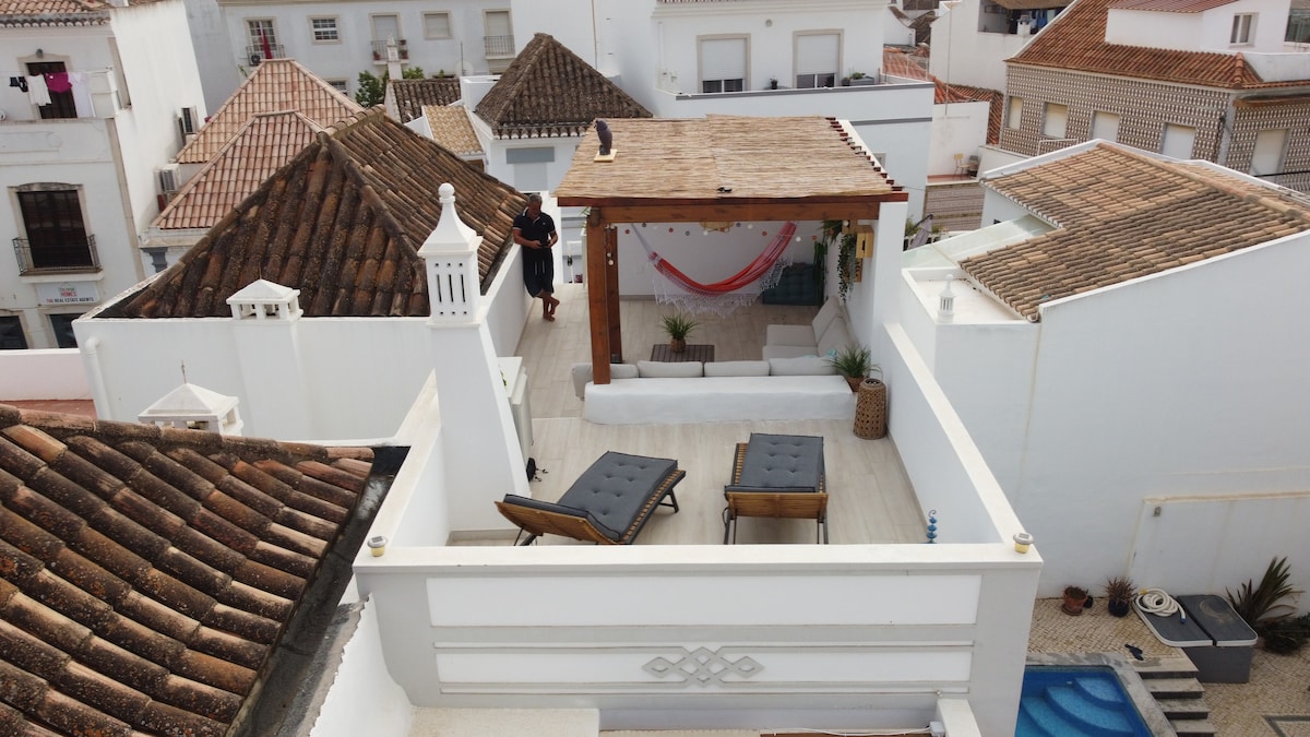 Este ático lleno de luz ofrece todas las comodidades para relajarse y mimarse. A pocos minutos del centro, es un refugio tranquilo donde los vencejos y las golondrinas vuelan con entusiasmo. La casa está repleta de arte original y decoración pop. Cuenta con una puerta corredera de cristal de 3 metros largo que da a un balcón con magníficas vistas. La azotea privada ofrece una pérgola, fantástico zona chill out, barbacoa, ducha exterior, tumbonas y vistas de Ayamonte, el río Guadiana y Portugal.