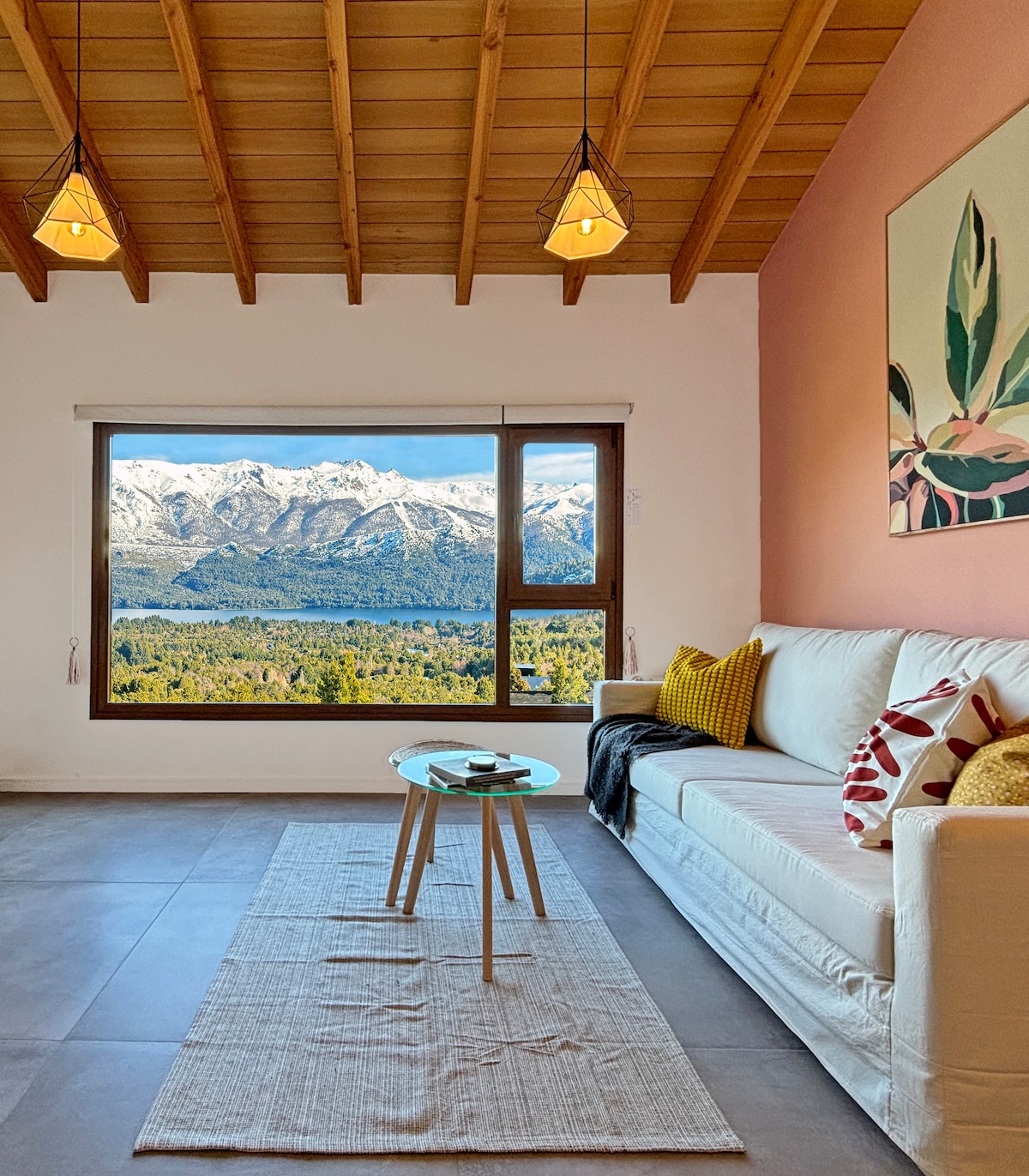 El encanto de esta casa está inmediatamente al entrar en este espacio moderno lleno de vida, bañado por el sol y la luz. El salón, el comedor y la cocina totalmente equipada comparten un espacio completamente abierto con impresionantes vistas al lago Nahuel Huapi. La terraza de madera es el lugar perfecto para disfrutar de una magnífica puesta de sol patagónica. NO HAY PROTECCIÓN PARA BEBÉS/NIÑOS EN LAS ESCALERAS INTERIORES NI EN LAS DOS TERRAZAS EXTERIORES.