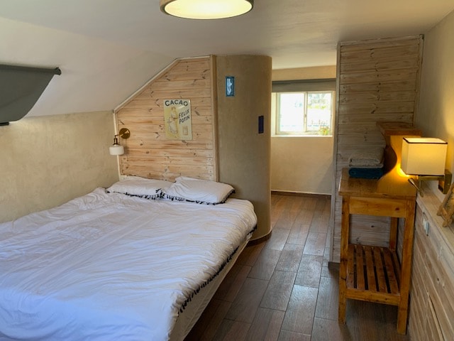 Una experiencia impresionante: siéntate en el balcón con vistas al bosque y sumérgete en las interminables verduras de los bosques de robles que se extienden hasta el monte Tabor y más allá. Solo abre el corazón y sumérgete en el silencio. Disfruta de la mezcla de naturaleza cruda y de un espacio para huéspedes boutique diseñado con un alto nivel. En verano, brisas suaves y en días fríos de invierno, calefacción por suelo radiante bajo un verdadero parqué de roble. Una habitación espaciosa, lujosa y mágica, con atención a cada detalle