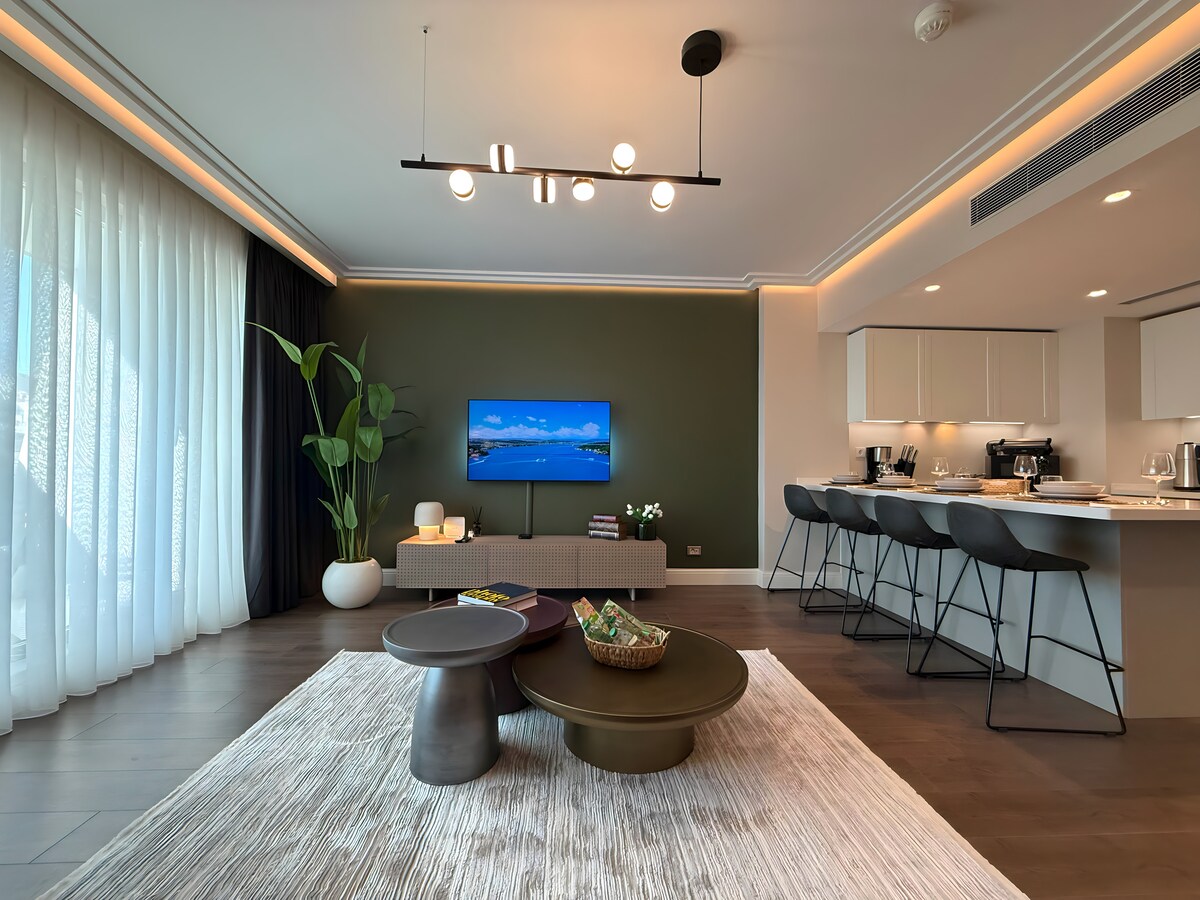El apartamento te da la bienvenida con su relajante interior y sus espectaculares vistas de la península histórica. Esta increíble vista se vuelve aún más mágica desde el balcón cada temporada y cada hora del día. Todos los muebles se eligen de marcas de diseño exclusivas y con el objetivo de hacerte sentir cómodo en una zona de lujo. Los azulejos turquesas están hechos a mano que dan la personalidad a este mágico espacio de estar. Las paredes tienen una hermosa armonía con hermosas baldosas hechas a medida.