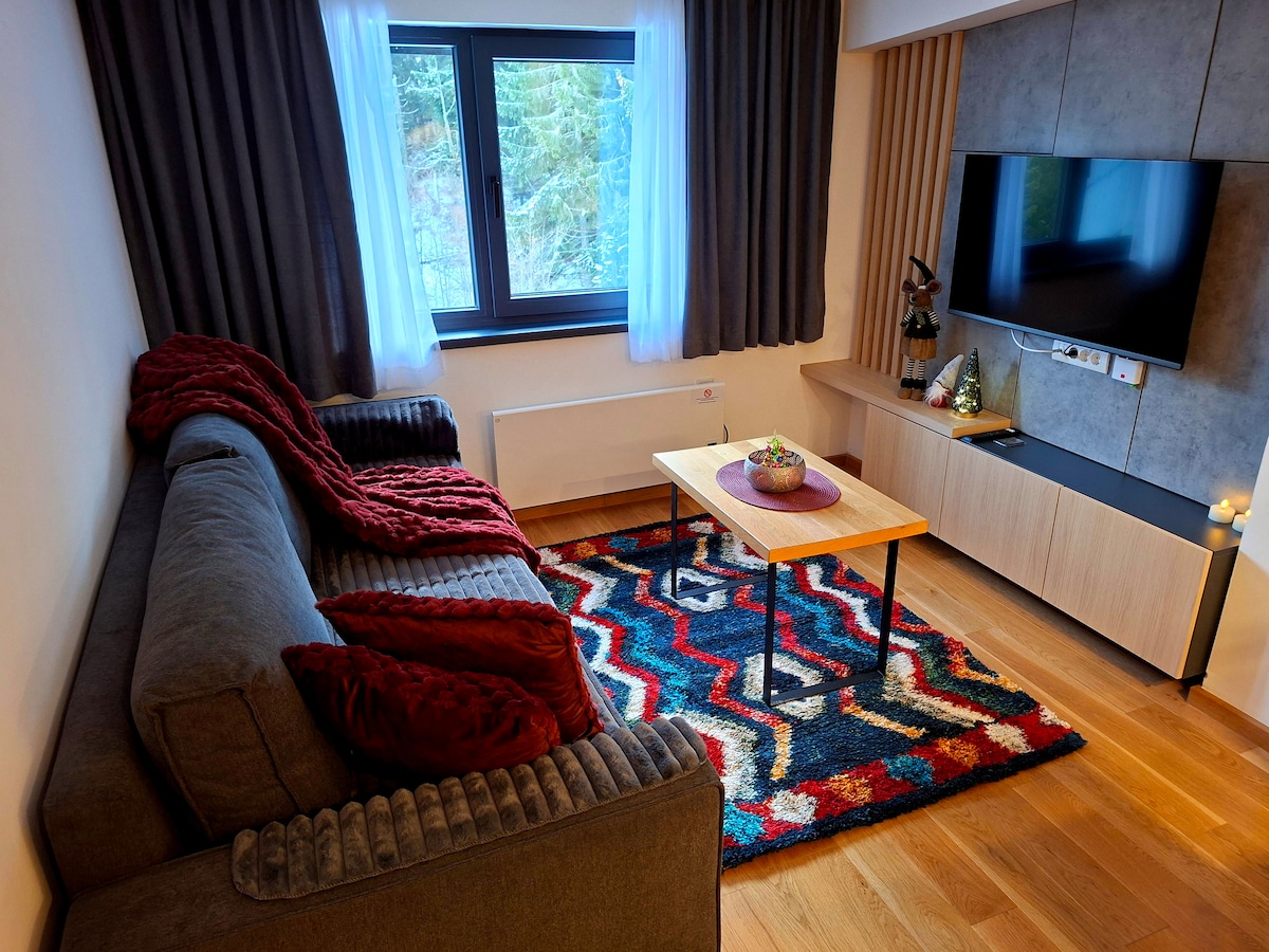 Este espacio único tiene su propio estilo. Se encuentra dentro del Aparthotel Vučko, en el corazón de Jahorina, a 50 metros de la pista de esquí de Poljica y a 28 km de Sarajevo. El departamento cuenta con su propio balcón. Dentro del hotel, los huéspedes pueden utilizar todos los servicios del hotel por un costo adicional: spa, gimnasio, jacuzzi, sala de juegos, restaurante, bar. El restaurante sirve platos bosnios, regionales e internacionales seleccionados. Hay WiFi gratuito disponible en toda la propiedad en este lugar único y familiar.