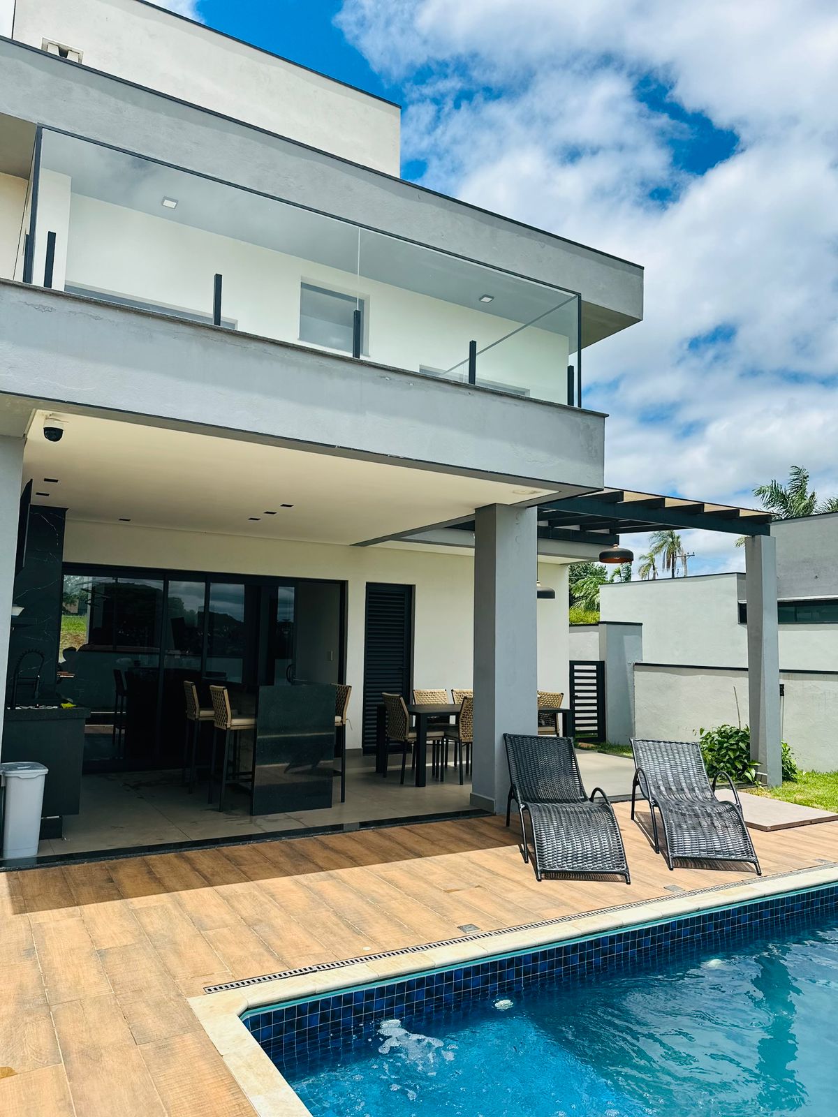 Amplia casa, al borde de la presa, en una comunidad cerrada con solo 28 lotes. Un proyecto llevado a cabo por Ambienta Arquitetura (prestigiosa por la revista Arquitetura e Construção y otros) con 3.900 m2 de terreno, 516 m2 construidos, una piscina estándar y una piscina climatizada más pequeña (calentador eléctrico), trampolín, slackline, kayak, surf de remo y barbacoa. 5 suites (todas con aire acondicionado) y otro aseo. Capacidad para alojar cómodamente a 14 personas más un bebé.