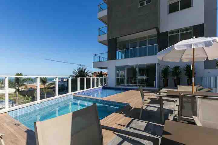 Apartamento completo na Praia Brava: 🛏️ 2 quartos com camas de casal e ar-condicionado ❄️ Sala climatizada 🍳 Cozinha equipada 📶 Wi-Fi e vaga de garagem ampla e coberta 🏊 Piscina de lazer e semiolímpica 💪 Academia | 🔥 Churrasqueiras | 😌 Sauna | 🎯 Sala de jogos 🌄 Vista para o morro com pôr do sol incrível Ideal para casais, famílias ou amigos. Conforto e lazer em localização privilegiada!