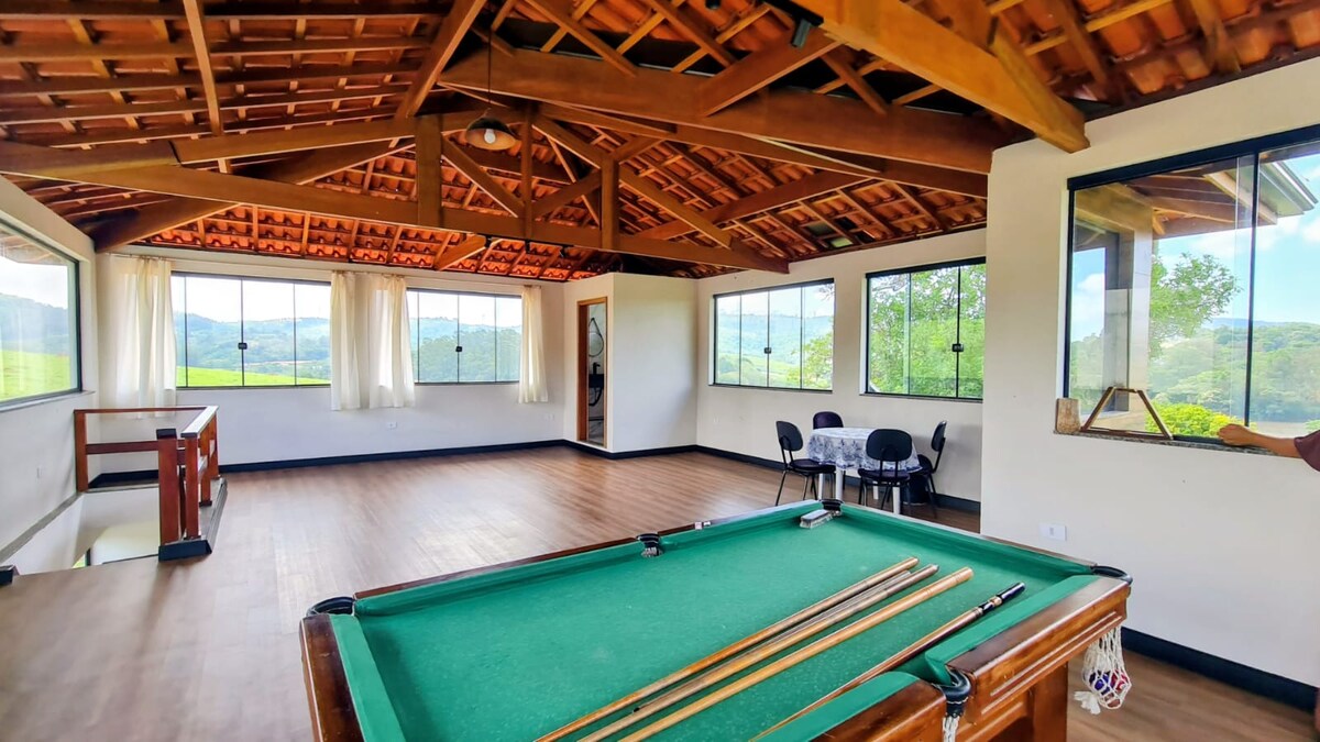 Perfecto para aquellos que buscan tranquilidad en medio de la naturaleza. Con vistas a las montañas y al sonido de los pájaros circundantes, la casa es ideal para desconectarse de la rutina. Con 3 amplias habitaciones, cocina, piscina, barbacoa, estufa de leña y patio al aire libre. Un gran césped con árboles, perfecto para niños y mascotas. Los días soleados y las noches estrelladas hacen que este lugar sea especial, con el clima del interior y el aire limpio de la naturaleza.