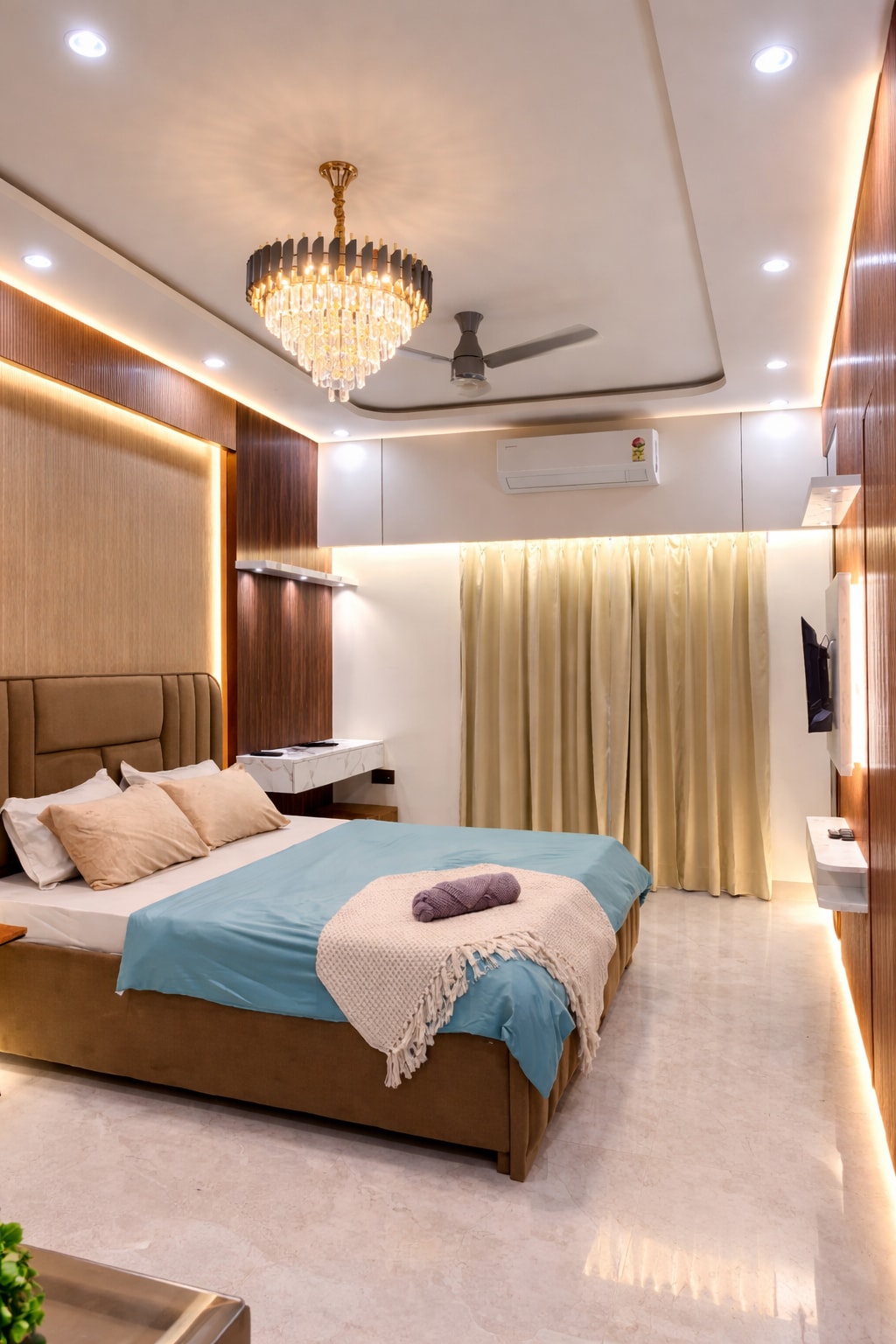 Bienvenido a este apartamento tipo estudio bellamente diseñado ubicado en el corazón de Greater Noida West. Ideal para viajeros solitarios, parejas o viajeros de negocios, ofrecemos una estancia cómoda con todos los servicios modernos. Lo que te encantará: Habitación amplia y bien iluminada con una lujosa cama tamaño queen. Elegante diseño de techo con iluminación ambiental y ventiladores elegantes. Televisión inteligente con configuración de entretenimiento y asientos acogedores. Comodidad con aire acondicionado (pero sin agua caliente) Balcón privado. Refrigerador. Baño limpio y moderno.