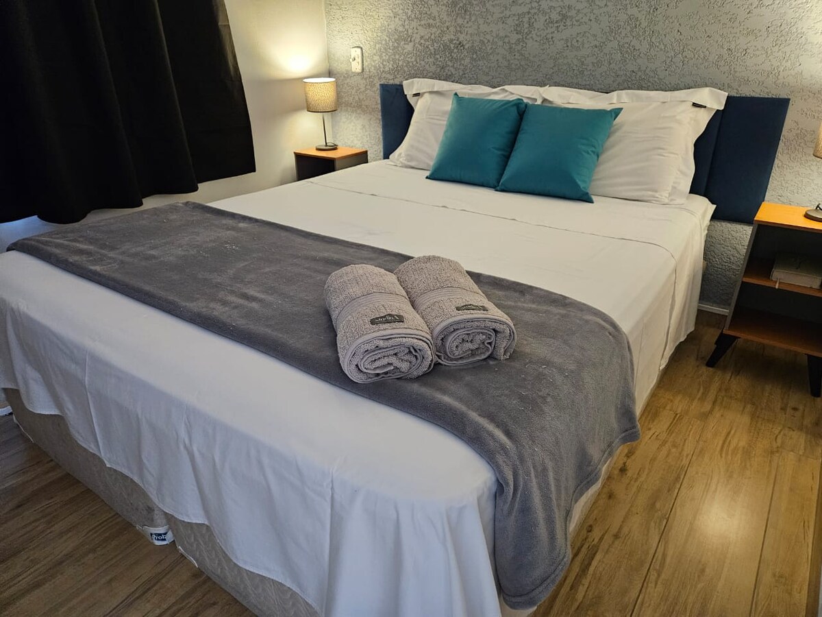 Aproveite a simplicidade e o conforto deste studio moderno, tranquilo e bem localizado em São Carlos, próximo à USP, UFSCar, rodoviária, centros médicos e à principal avenida da cidade. O edifício oferece portaria 24h, reconhecimento facial e fechadura eletrônica, garantindo segurança. O apartamento conta com ar-condicionado, Wi-Fi, cozinha equipada. Há garagem paga no prédio, lavanderia, academia compartilhada e espaço de trabalho dedicado. Ideal para estadias curtas ou longas.