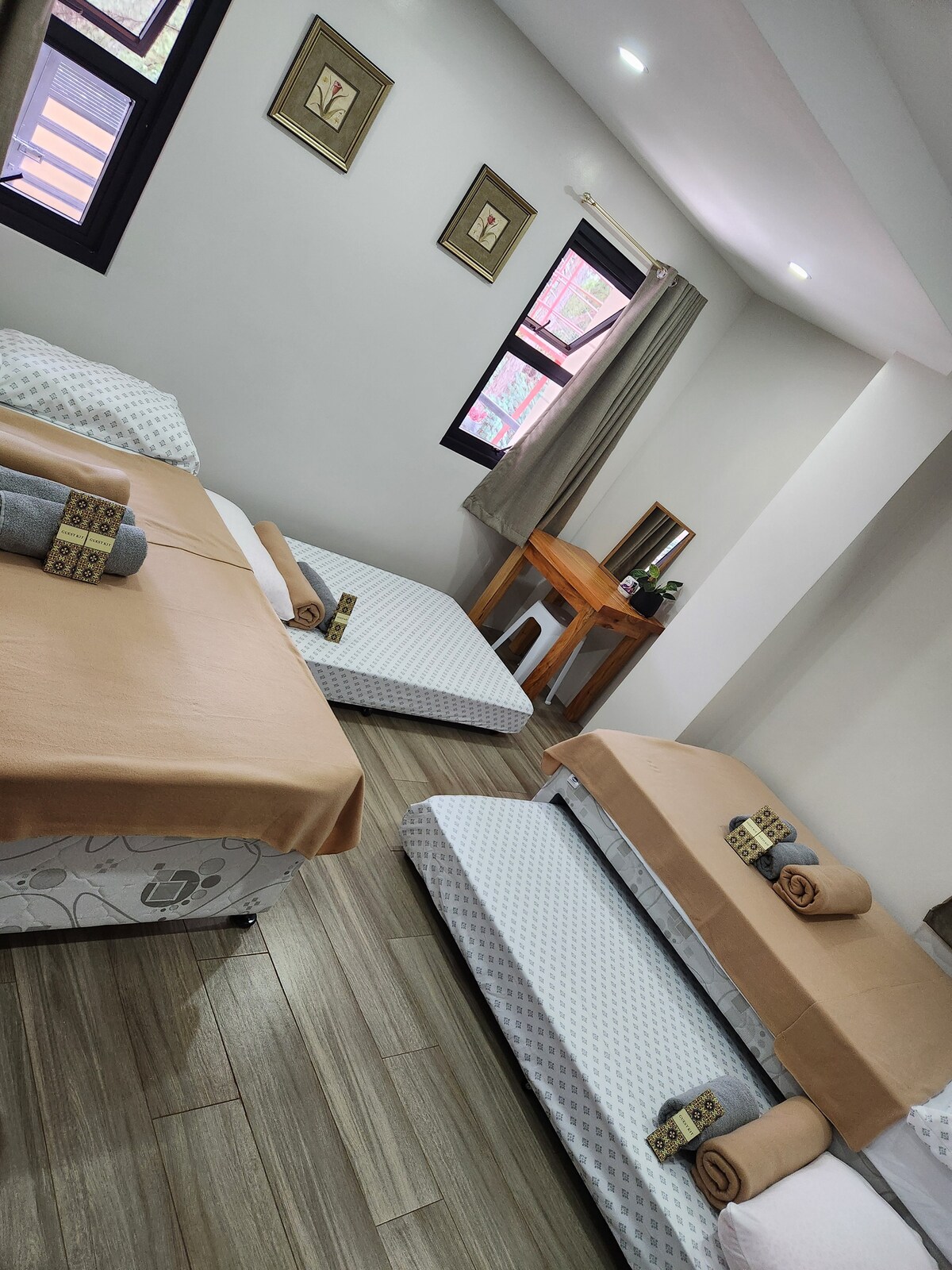 1. Un dormitorio recién construido de 1 dormitorio con loft. 2. Muy cerca de lugares turísticos populares (de 3 a 5 minutos de botánico,mansión, etc.) 3. Todos los electrodomésticos y muebles son nuevos 4. TV inteligente de 55 pulgadas con netflex, calentador de ducha, utensilios para comer y cocinar 5. Se proporcionan sábanas, incluidas toallas y suministro de 1 día de artículos de tocador. 6. A lo largo de la carretera principal y a 50 metros de la terminal de jeepny. 7. Vecindario tranquilo y rodeado de pinetos 8. Estacionamiento cerrado de hasta 5 autos 9. El tiempo de entrada es a las 2:00 p. m. El check-out es a LAS 11:00 A. M.