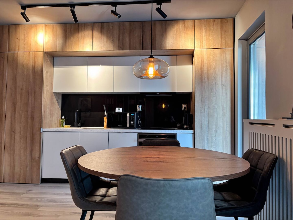 ¿Viajas por trabajo o necesitas un espacio profesional y cómodo cerca del aeropuerto de Cluj? Este apartamento totalmente equipado se encuentra a solo 5 minutos y ofrece todo lo necesario para una estancia productiva y relajante. Check-in autónomo, wifi de alta velocidad y servicios de primera calidad incluidos. Diseñado pensando en los viajeros de negocios, el apartamento combina interiores elegantes y modernos con características inteligentes y un entorno tranquilo, ideal para trabajar y relajarse. Disfruta de una experiencia de alojamiento de alto nivel.
