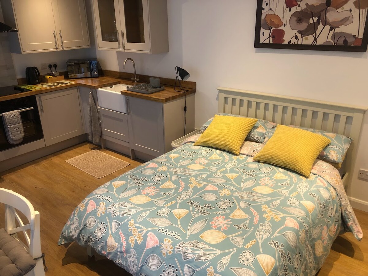 Anexo independiente en una zona muy solicitada de Denham. Excelentes conexiones de viaje a la M40 y M25 (2 minutos en coche), al aeropuerto de Heathrow (15 minutos en coche), a la estación de tren de Denham (2,9 km/5 minutos en coche) y al metro (Uxbridge) (4,8 km/5 minutos en coche). Estación del campo de golf de Denham a 15 minutos a pie, estudio Pinewood a 4 millas/10 minutos en coche. La propiedad cuenta con: salón/dormitorio, cocina, nevera, lavadora secadora. Baño moderno, calefacción central. TV 4K con Netflix y Prime Video. Entrada privada.