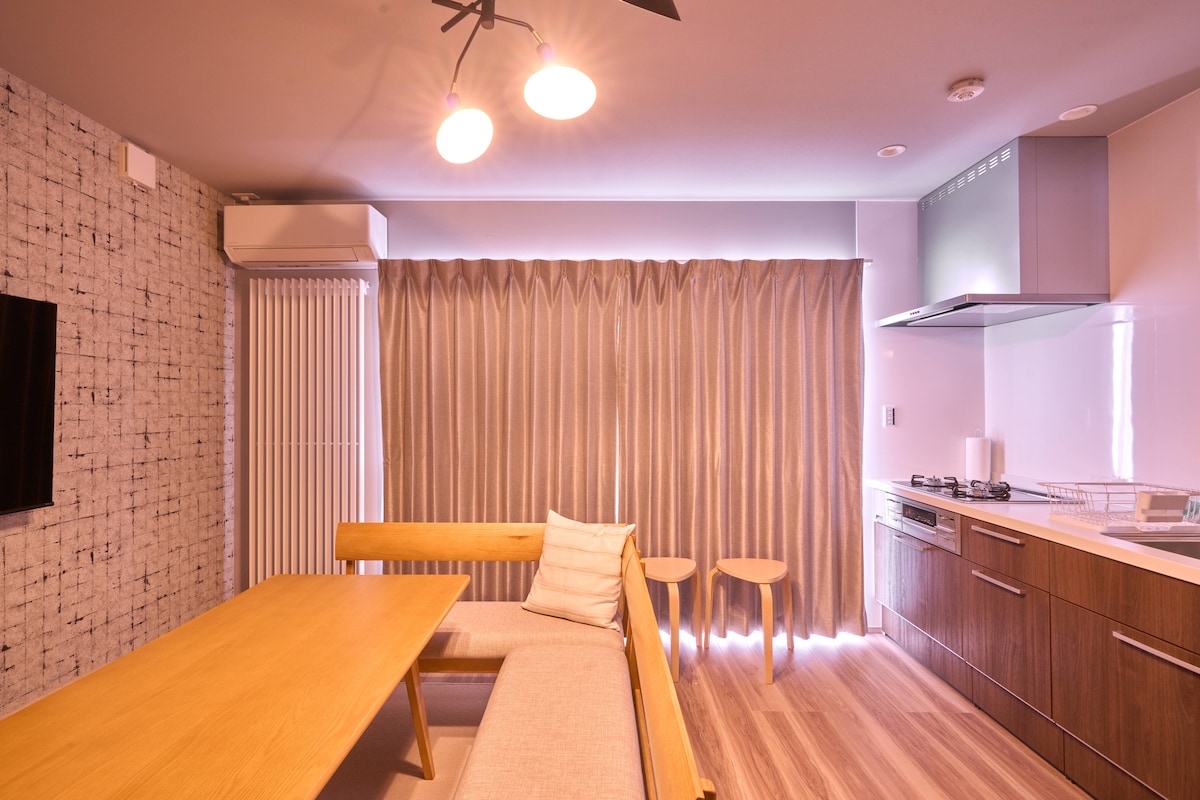 Newly built 2-bedroom apartment in central Kutchan, a 7-minute walk from JR Kutchan Station. HANAZONO Resort is a 10-minute drive and Grand Hirafu about 13 minutes away. Ideal for 3–4 friends, couples, or families visiting Niseko. The apartment features a spacious living room, equipped kitchen, ski storage, and fast Wi-Fi for relaxing after a day on the slopes. Restaurants, cafés, and a large supermarket are within walking distance. Enjoy local food and experience Niseko like a local.