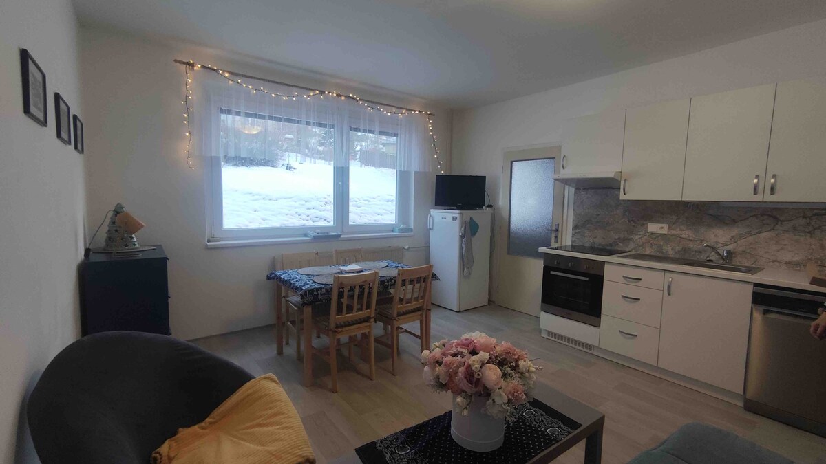 Ya sea que hayas terminado una caminata o un día en las pistas, regresar a nuestro apartamento siempre es una recompensa. ¿Qué es lo que más aprecian nuestros huéspedes?Amplia sala de estar con TV, ideal para relajarse por la noche. Cocina totalmente equipada: todo, desde un lavavajillas hasta una cafetera con cápsulas listas para usar. Dos dormitorios separados que garantizan privacidad para todos los huéspedes. Excelente ubicación: todo lo importante está al alcance de la mano: pistas de esquí de Tanvaldský Špičák (5 minutos en auto), Černá Říčka (10 minutos), tiendas y restaurantes.