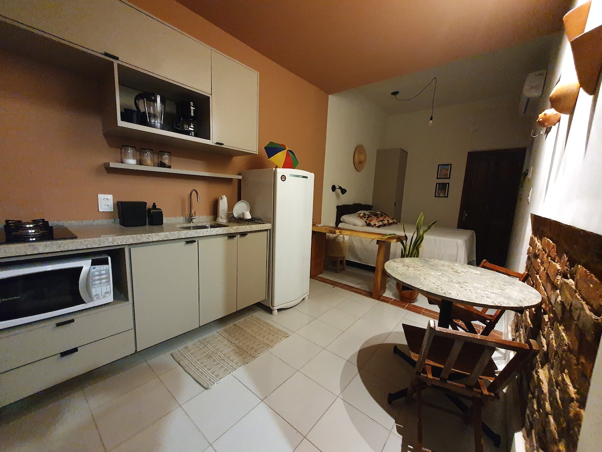 A 8 minutos del centro histórico en auto y muy cerca de la playa y del centro comercial Patteo de Olinda. Loft privado (microcasa) amueblado con escritorio para trabajar, wifi de fibra óptica ultrarrápido, aire acondicionado, cocina completa, nevera, cafetera, tostadora, utensilios, platos, vasos, cubiertos, vitrocerámica, baño privado con ducha eléctrica, portón electrónico, área de estacionamiento interno. Junto a la playa y el centro de Olinda y a 15 minutos del centro de Recife.