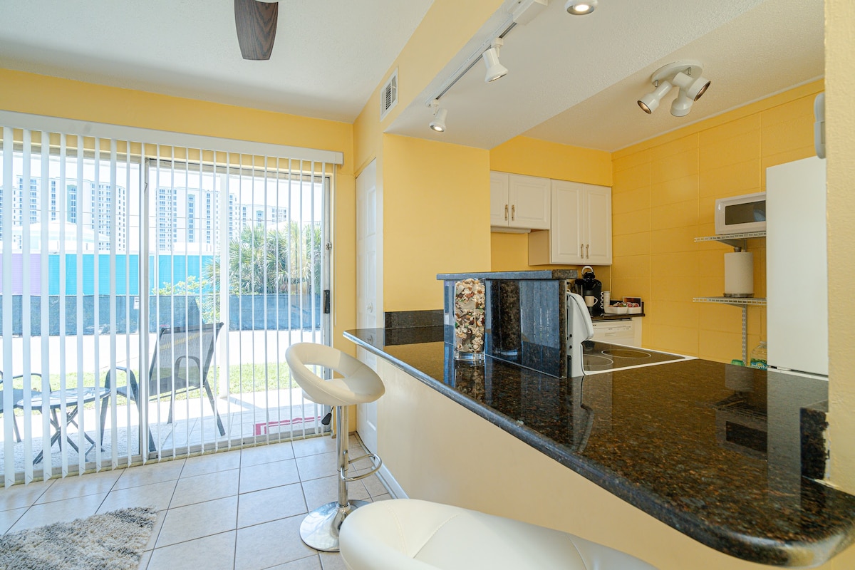 Apartamento de 1 dormitorio y 2 baños recientemente renovado con literas incorporadas. Situado junto a la playa, en el piso 19, con impresionantes vistas panorámicas a las aguas esmeralda y las playas de arena blanca prístina del golfo de México. Cocina totalmente surtida con nuevas encimeras de granito y electrodomésticos de pizarra. Internet de alta velocidad fiable y rápido en todas partes. Los servicios del centro vacacional incluyen una gran piscina y jacuzzi, un bar tiki junto a la playa que sirve bebidas heladas y cerveza. Una fabulosa cafetería que sirve desayunos calientes, pizza, sándwiches y ensaladas.