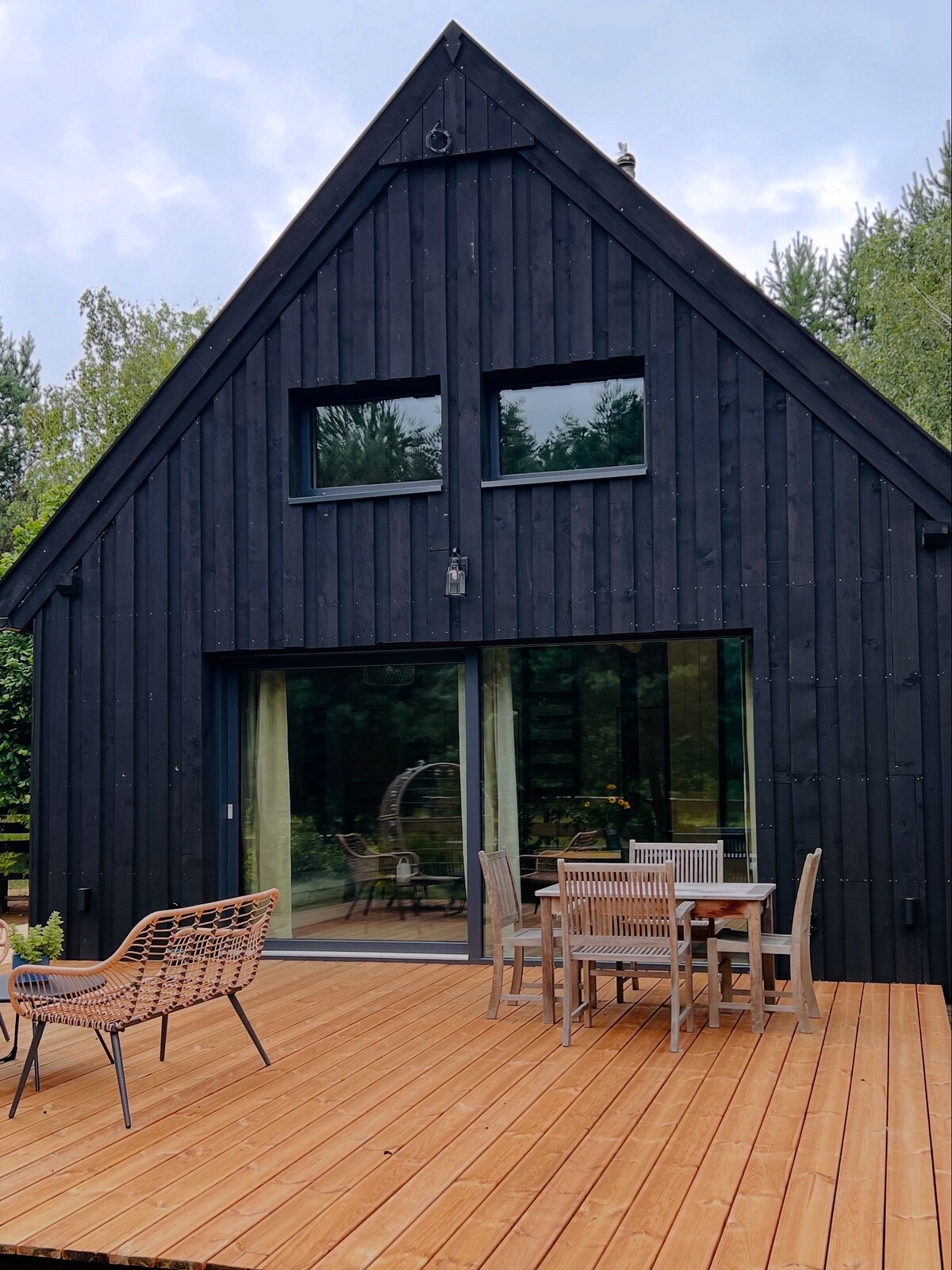 Nuestra casa de madera ha sido diseñada de forma moderna y funcional. Hemos intentado integrarnos perfectamente en el entorno y no perturbar la naturaleza que nos rodea por todos lados. Nuestro pequeño pueblo no se ha rendido al tiempo, todo funciona aquí como antes. No hay tiendas ni restaurantes, no hay turistas, solo silencio y naturaleza. El pueblo está rodeado de prados y el bosque de Puszcza Piska, a 10 km de las ciudades más cercanas. Las grullas y las innumerables aves acuáticas te invitan a un espectáculo diario. Aquí encontrarás la paz.