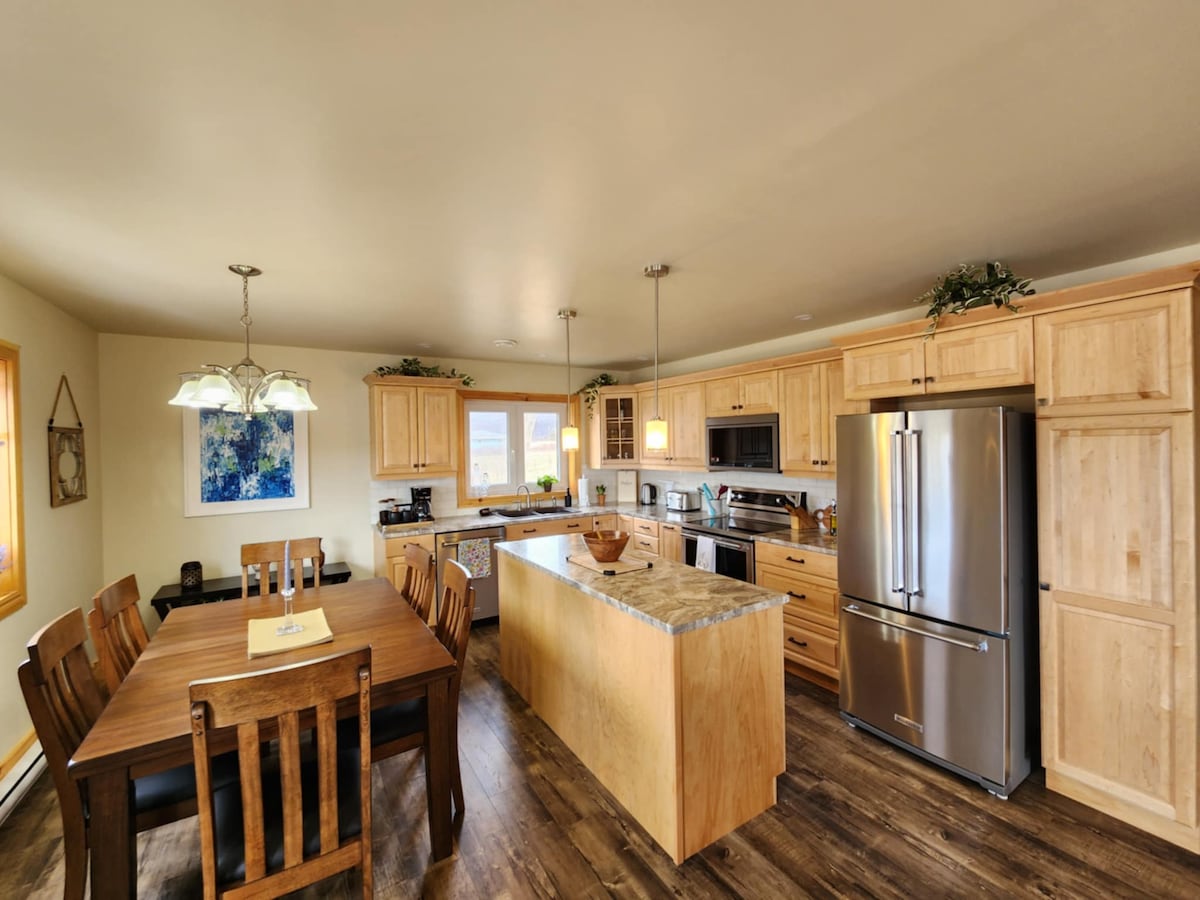 Escápate a nuestro paraíso frente al mar en St. Ann's Bay en el pintoresco sendero Cabot Trail! Esta nueva y espaciosa casa de 2 dormitorios ofrece un diseño moderno y una vida de concepto abierto. Capacidad para 6 personas con un dormitorio queen, un dormitorio con literas (doble en la parte inferior e individual en la parte superior) y un sofá cama. Disfruta de impresionantes puestas de sol, vistas a las montañas y fácil acceso a lugares de interés, senderismo, excursiones en barco y restaurantes. Sumérgete en el encanto y la belleza de Cabo Bretón y crea recuerdos inolvidables durante tu estancia.