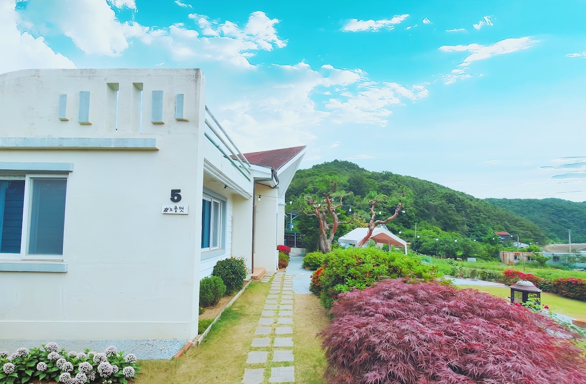 ¡Solo disfrutamos de la casa privada en el primer y segundo piso sin otros huéspedes! 3 ▶ventanas, la habitación del primer piso, la sala de estar y el baño separados de la habitación, excelente jardín de Geoje, ¡Un ático espacioso y bonito en el segundo piso con unas vistas espectaculares del JCT de un vistazo! ▶ 1F y 2F cada uno tienen TV (2F también se pueden equipar). ¡Ropa de cama cómoda como lo demuestran▶ las reseñas! ¡Todo sin ningún otro huésped! ¡Ni siquiera tienes que darte cuenta del propietario! ¡En una casa privada en el anexo! ¡Sogawon para disfrutar! ▶SeaWorld, Haegeumgang-Odo-do y las terminales de cruceros Ji-do están a 2 minutos de distancia. Cúpula de▶ la selva (Jardín Botánico Geoje), Wind Hill, Torre Fresca, Cicadas, Campamento de la Prisión de Geoje, etc. Está ubicado en el centro de las atracciones turísticas de Geoje, para que puedas disfrutar de las visitas turísticas de Geoje muy convenientemente. ※ Solo se admiten mascotas con hasta 2 perros pequeños de menos de 10 kg durante la celebración. ※ En caso de incumplimiento de la normativa, el anfitrión puede negarse a entrar en la habitación. ※ No hay ninguna restricción en los perros guía acompañados por personas ciegas.