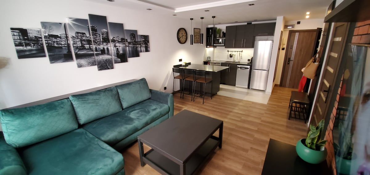 Le invitamos a un apartamento bellamente decorado situado en la parte verde del centro de Nowy Sącz, en la zona de la calle Lwowska. Apartamento ideal para 2 personas. Consta de una cocina totalmente equipada, un dormitorio y un amplio salón. Los huéspedes disponen de aparcamiento gratuito junto al edificio. Ubicación ideal, en la zona hay tiendas, restaurantes y un centro comercial. A 10 minutos a pie de la plaza del mercado y el casco antiguo.