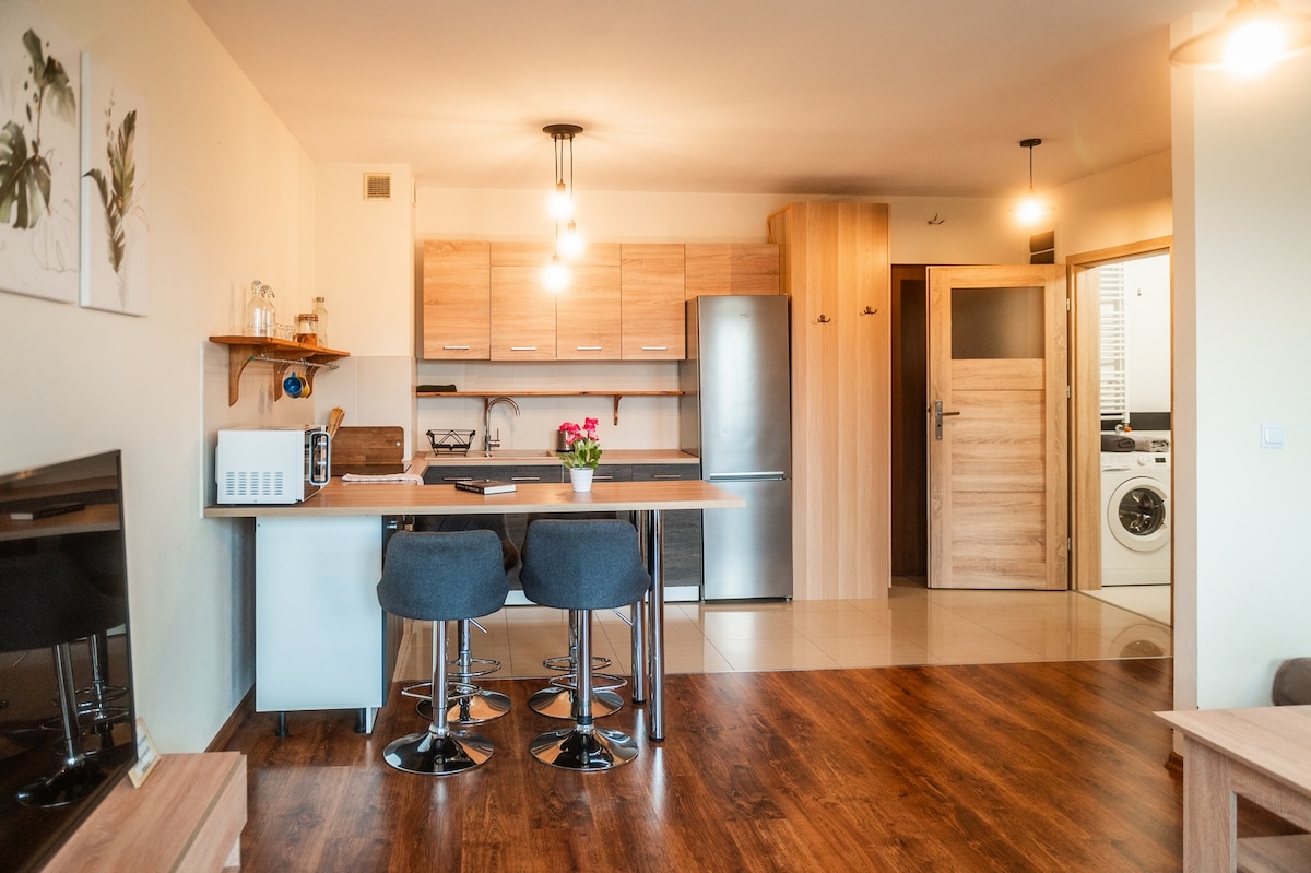 An excellent place for a short or longer stay in Javor. For work and for relaxation. The apartment has a comfortable bed, a kitchen equipped with an induction hob, an oven with microwave function and a refrigerator with freezer. There is a washing machine and an iron at guests' disposal. The balcony with a deckchair is a good place to relax overlooking the fields and the road with unobtrusive car traffic. Very good access to the S3 expressway (3 km) and the A4 highway. We issue invoices.