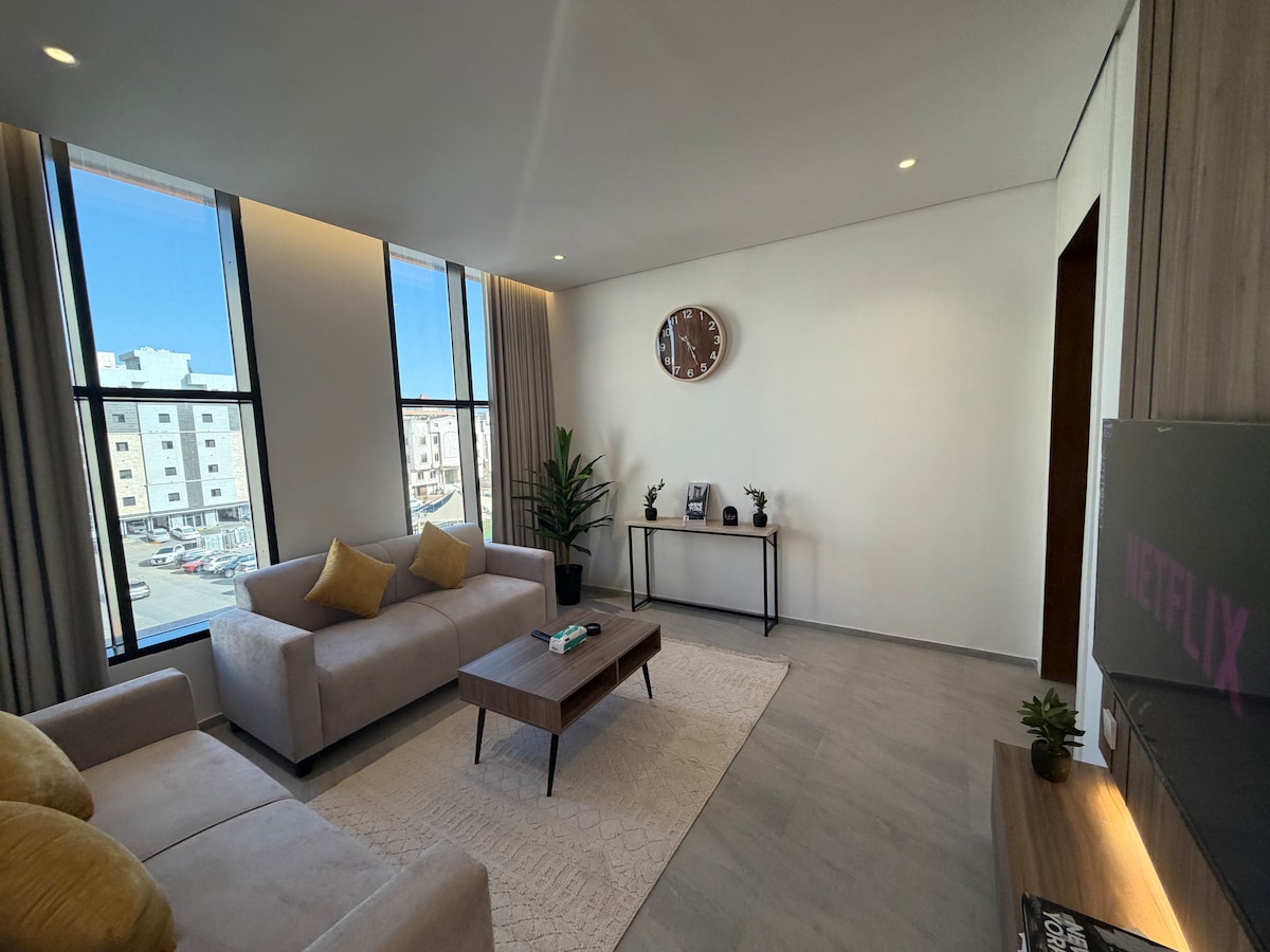 ¡Bienvenidos, queridos huéspedes! 📍 Ubicación: A 15 km del aeropuerto internacional Rey Abdulaziz. A 4 km del centro comercial Stars Avenue. A 13 km del centro comercial Red Sea A 3,5 km de U Walk 🏡 Reglas de la unidad: Hora de llegada: 3:00 p.m. Check-out: 12:00 PM 🚭 No fumar. 🚫 Evita el ruido o las fiestas durante tu estadía. ¡Gracias!