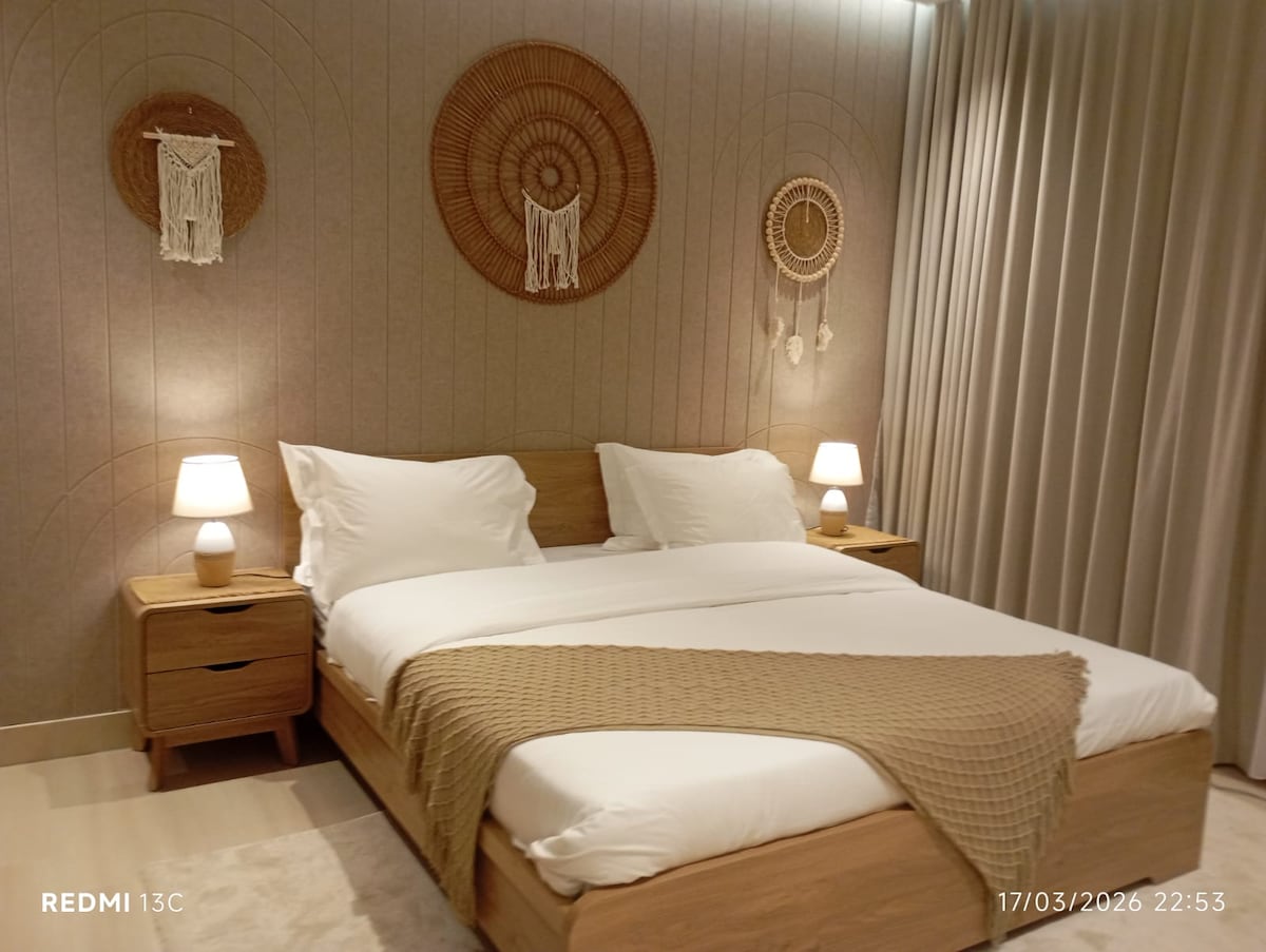 Disfruta de una estancia refinada en una elegante residencia de un dormitorio con un diseño moderno y un ambiente tranquilo y cómodo. Perfecto para la relajación y la privacidad. Con una ubicación ideal cerca del paseo marítimo y del centro comercial Red Sea Mall, con fácil acceso al aeropuerto, restaurantes, cafeterías y zonas comerciales. Una excelente opción para parejas, familias pequeñas y viajeros de negocios que buscan comodidad en una ubicación privilegiada.